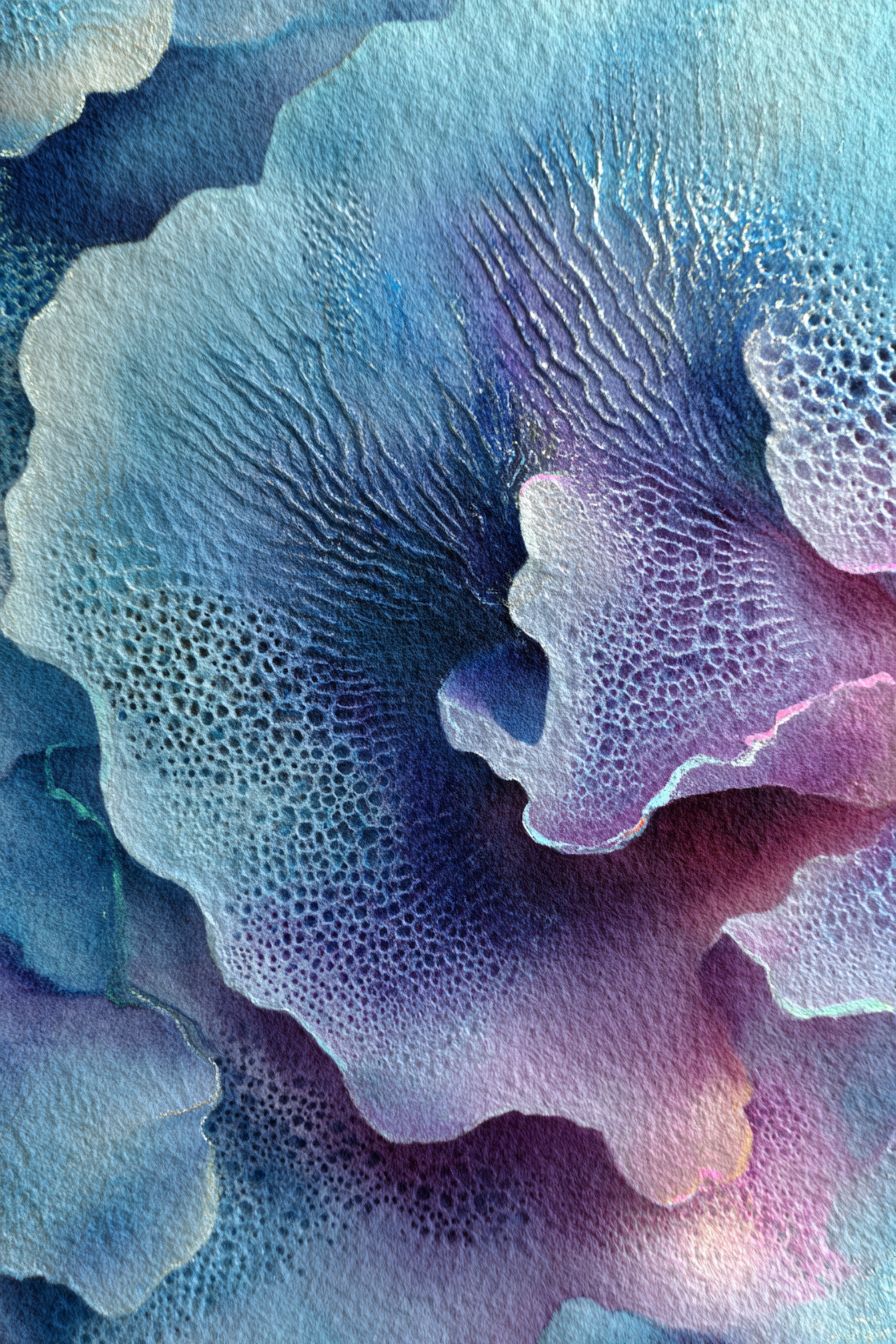 Les peintures abstraites à l'eau avec une base de lavage à l'encre utilisent des couleurs vibrantes pour créer une atmosphère tranquille et mystérieuse