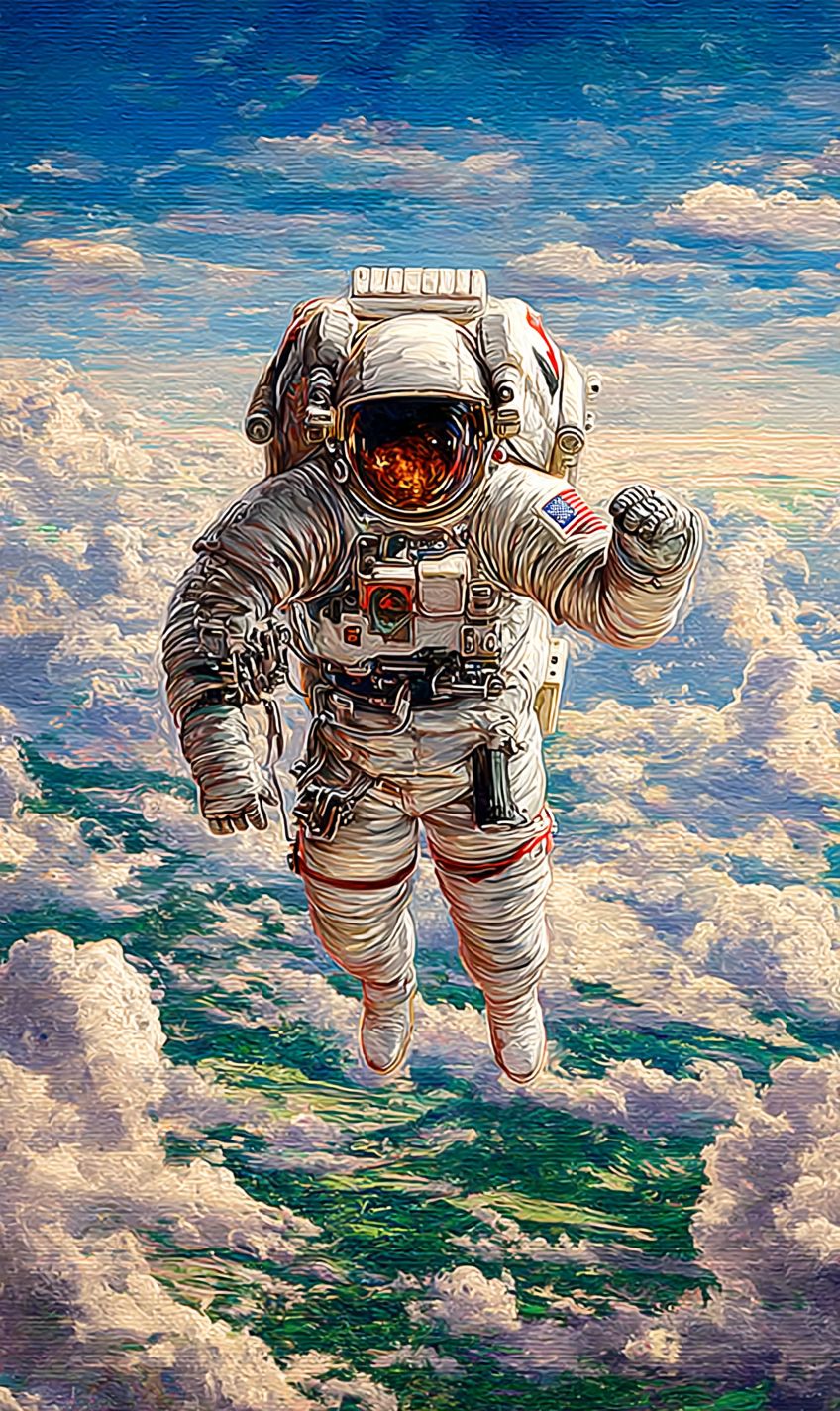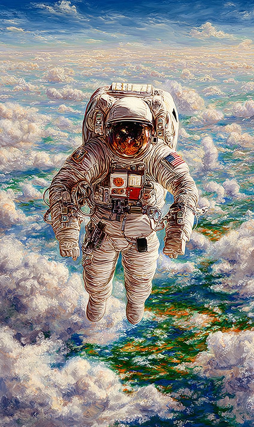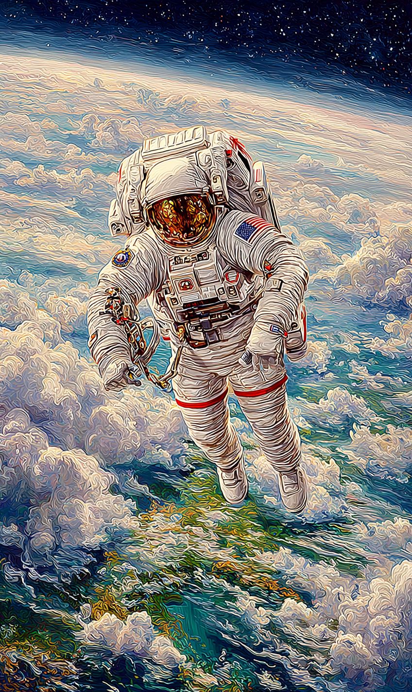 a daring astronaut in space --sref 4021702947 --ar 3:5 --v 7.0