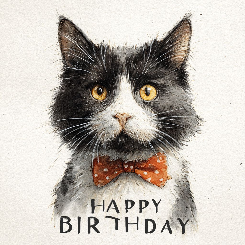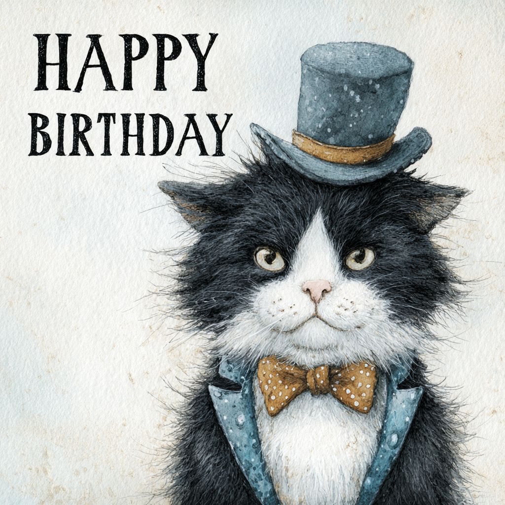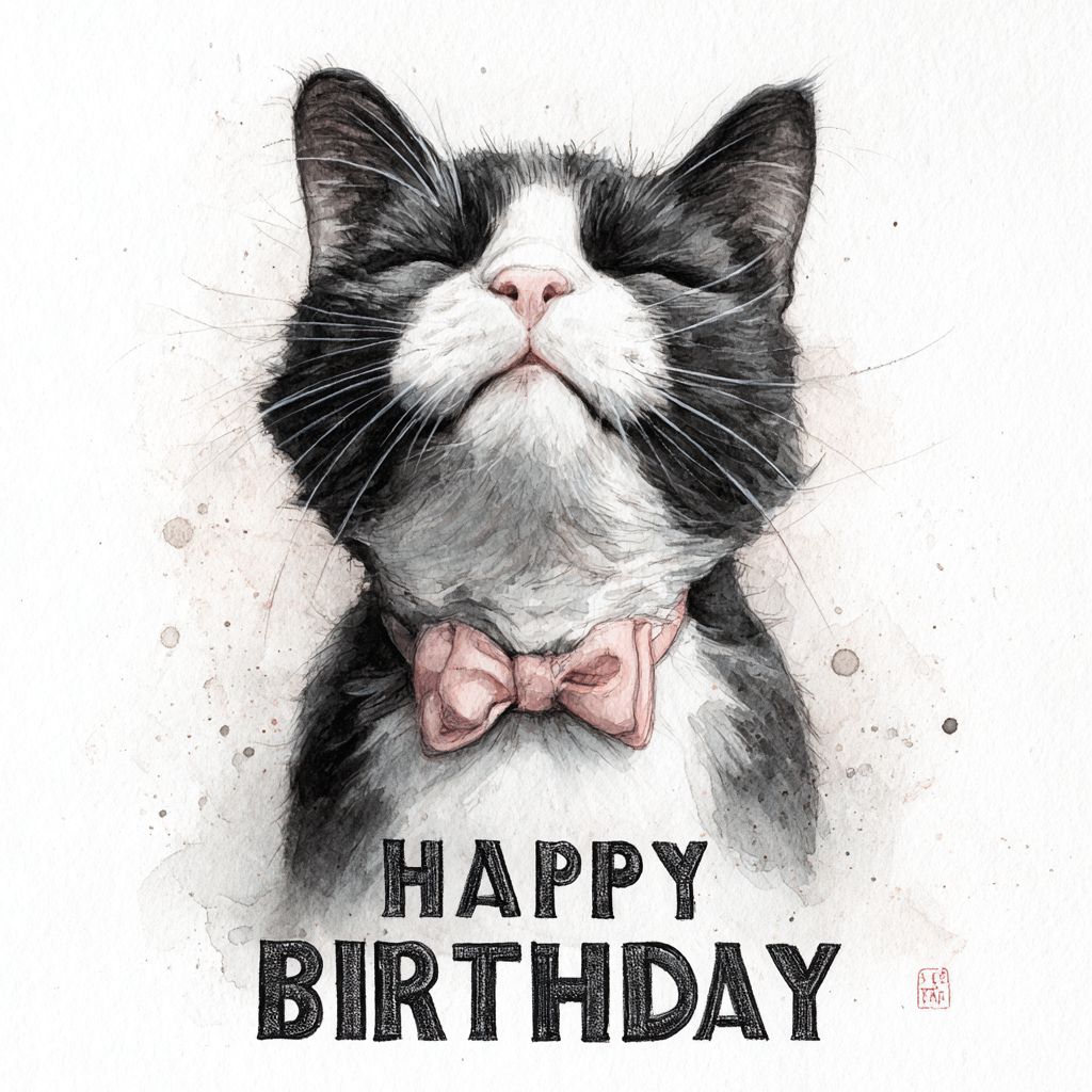 Un chat en smoking joyeux et adorable, joyeux anniversaire