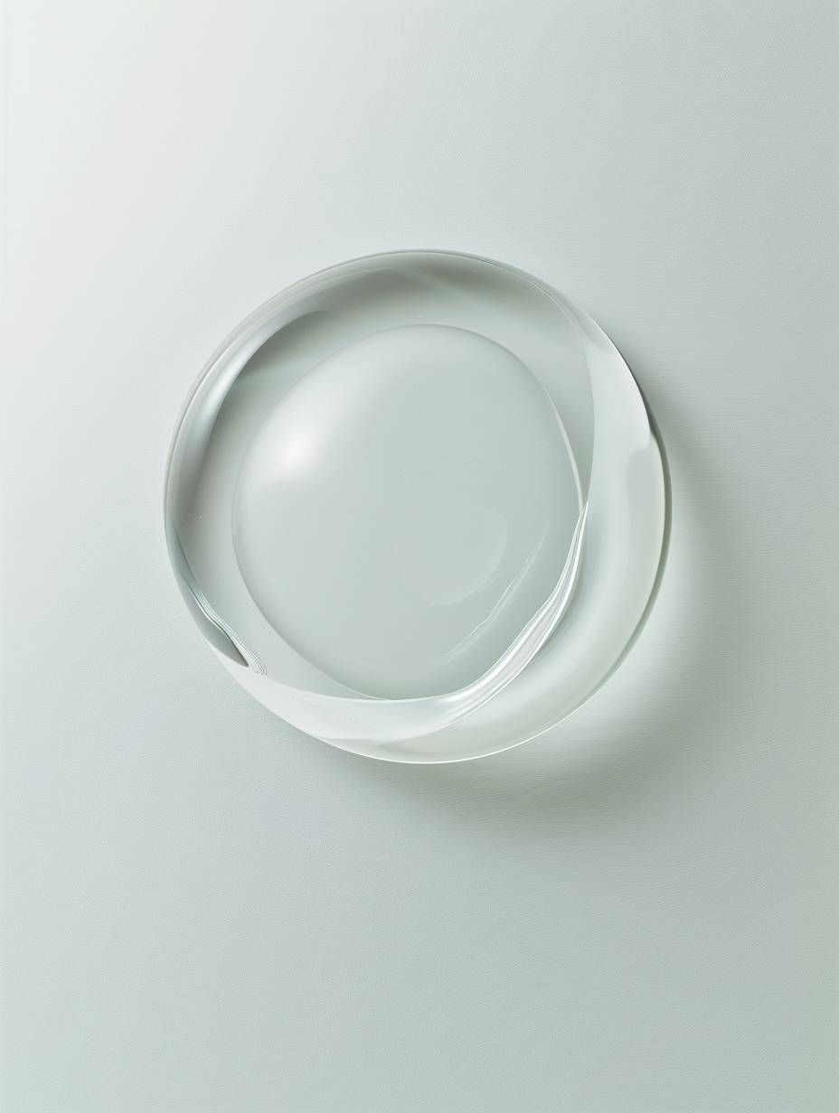 top-view, a realistic photograph of a drop of colorless oil, photographed on a white surface, top view, zoomed out, studio photography, hard white flash --ar 3:4 --stylize 50 --v 6.0