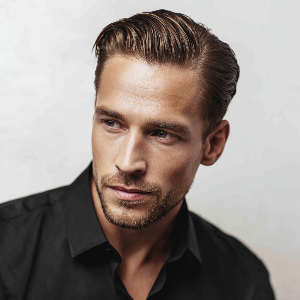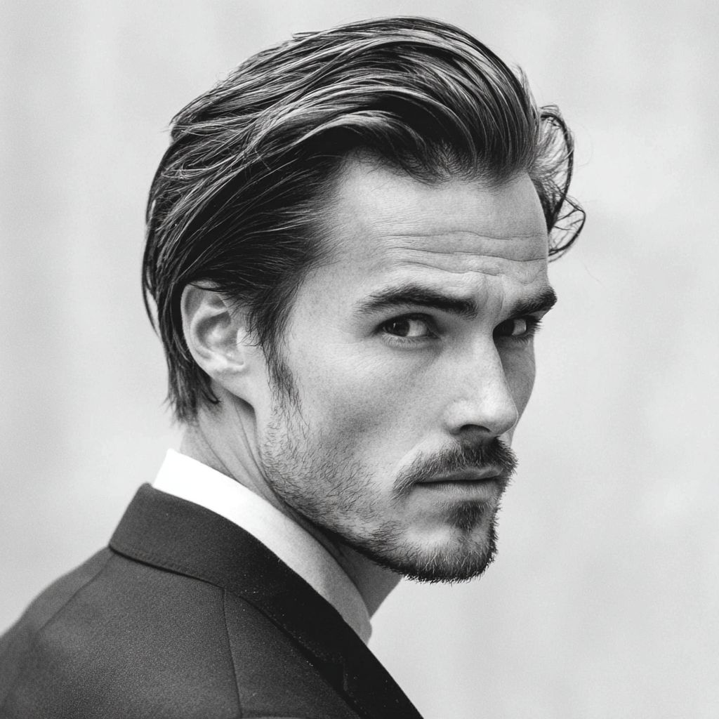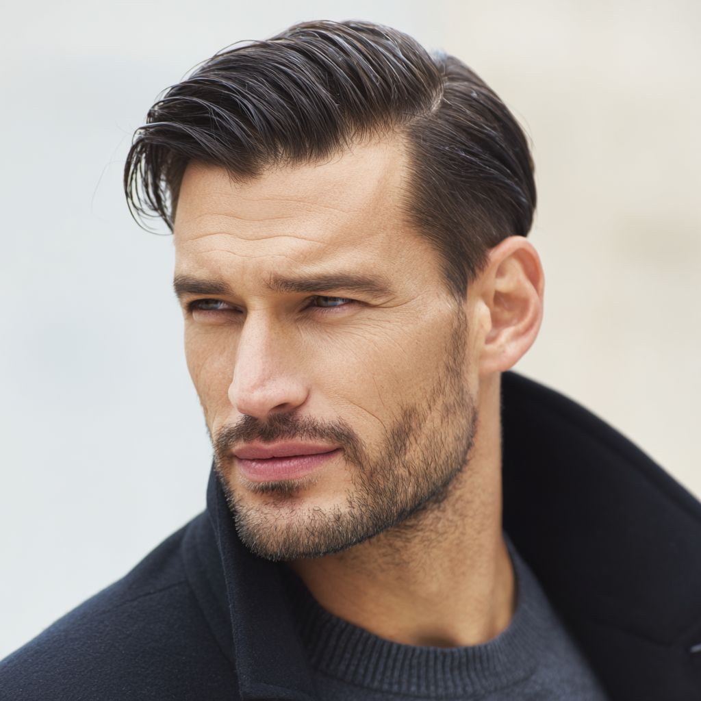 Un homme séduisant avec une coiffure lisse et raie sur le côté