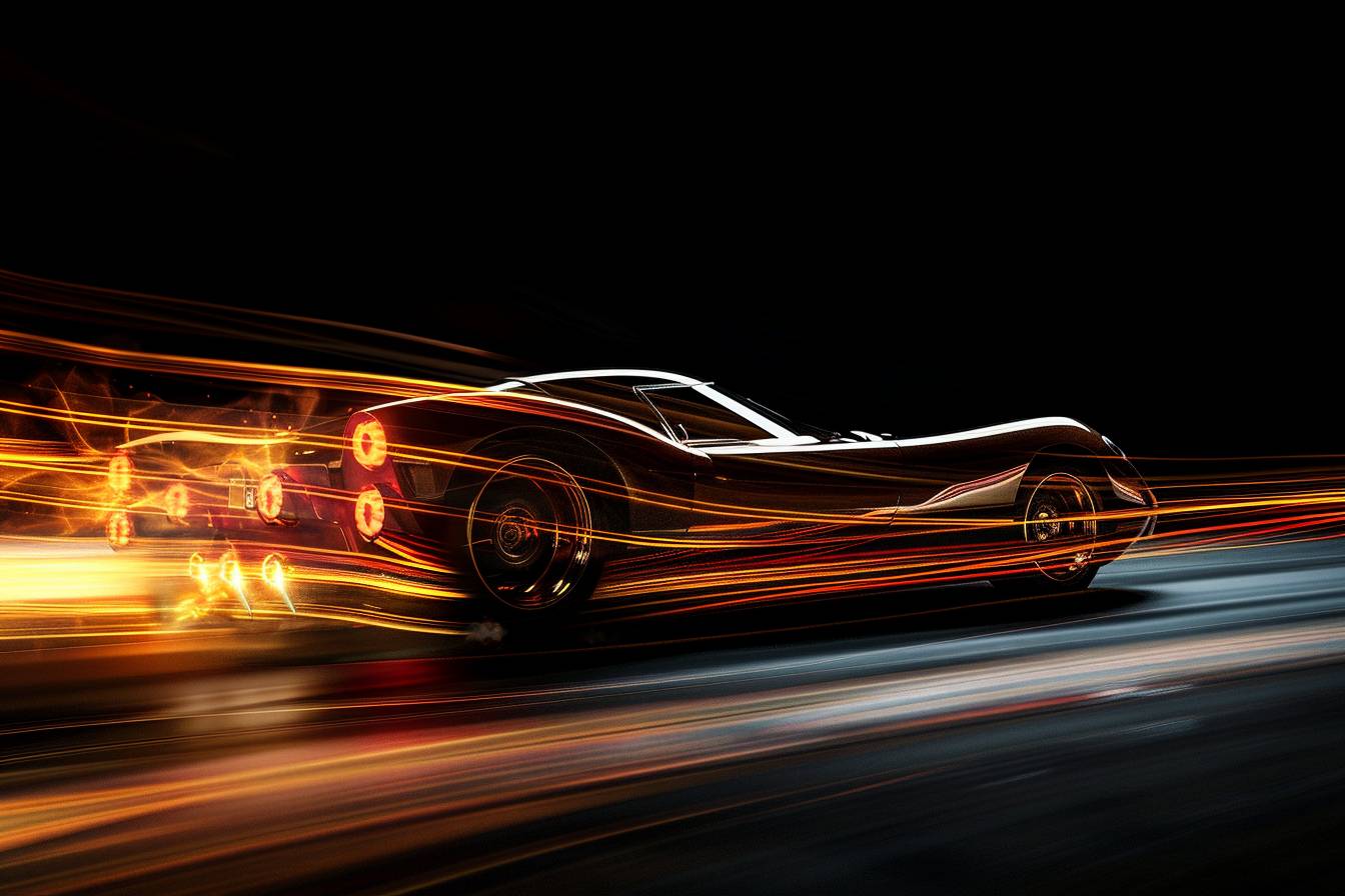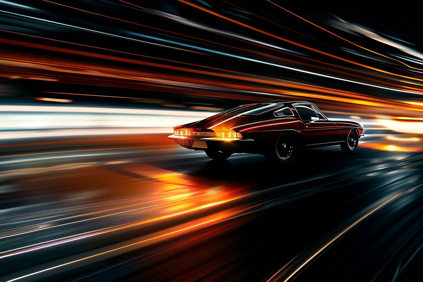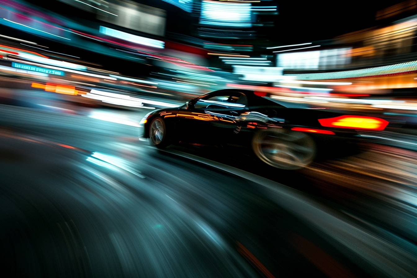 Un véhicule en mouvement rapide avec flou de mouvement.