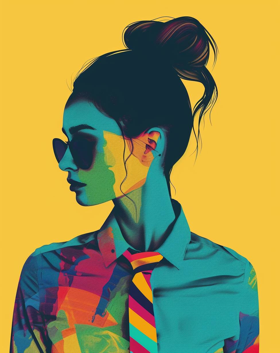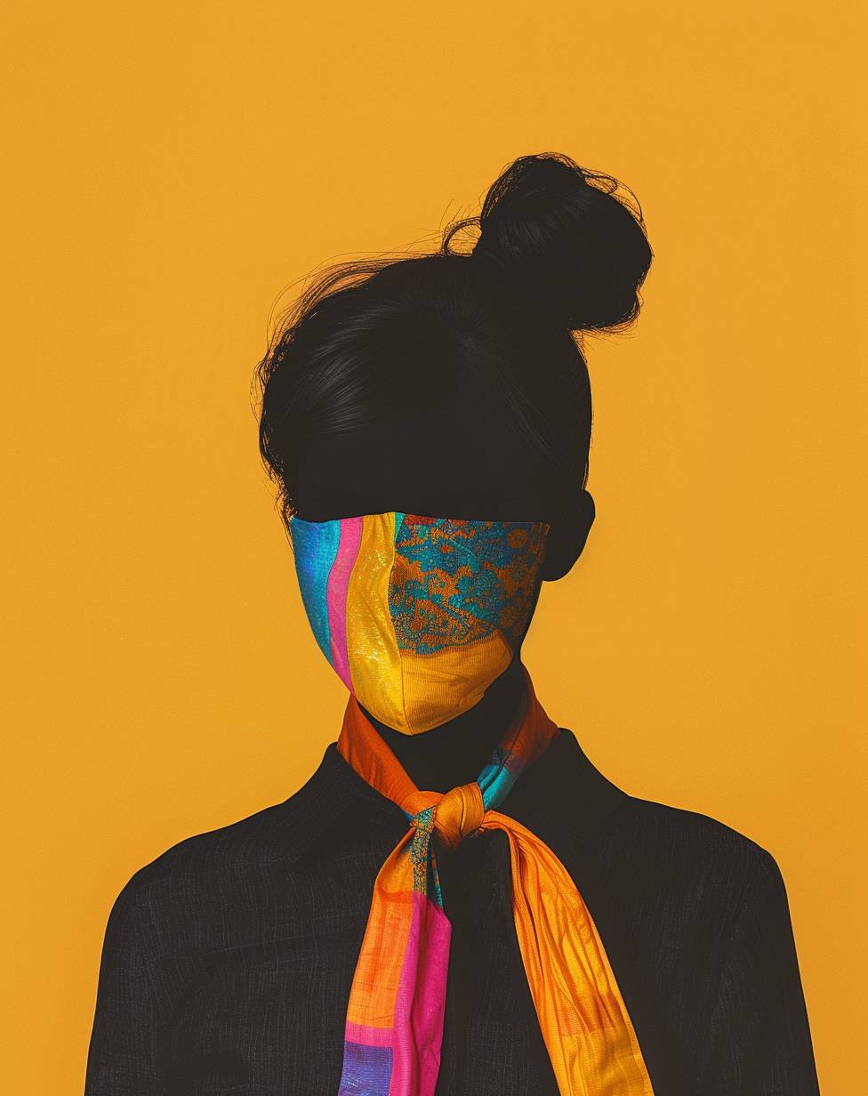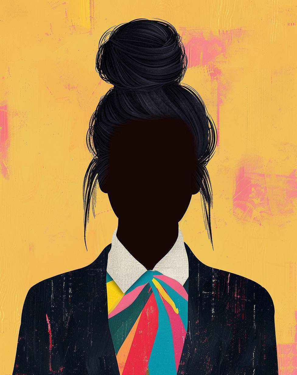 Femme sans visage avec une haute queue de cheval et une cravate colorée sur fond uni
