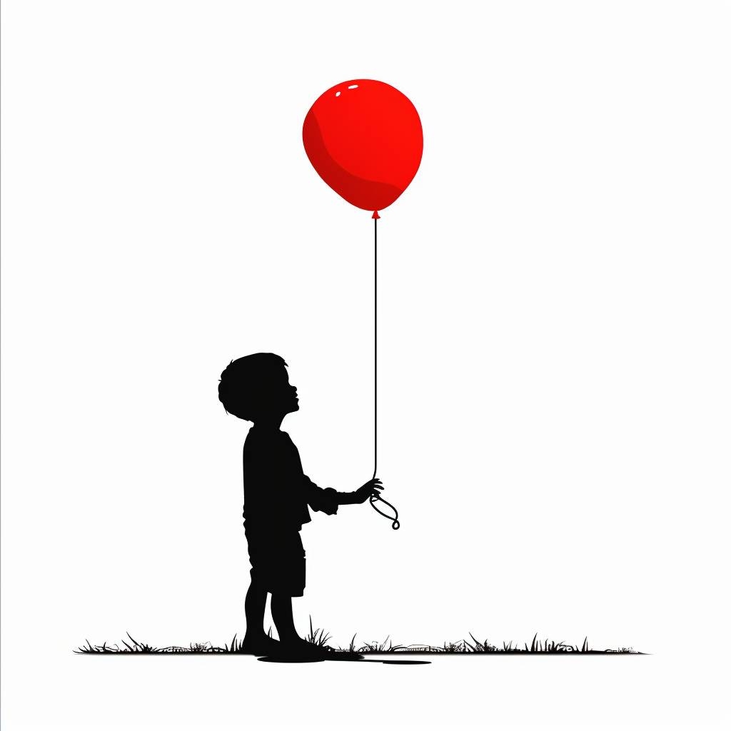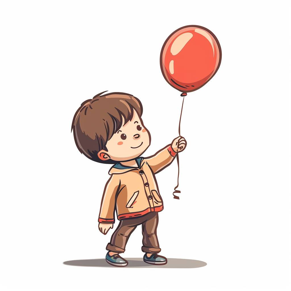 Front view of a child holding a balloon and handing it over, upper body, icon, one, element, simple, illustration, white background --ar 1:1 --v 6.0