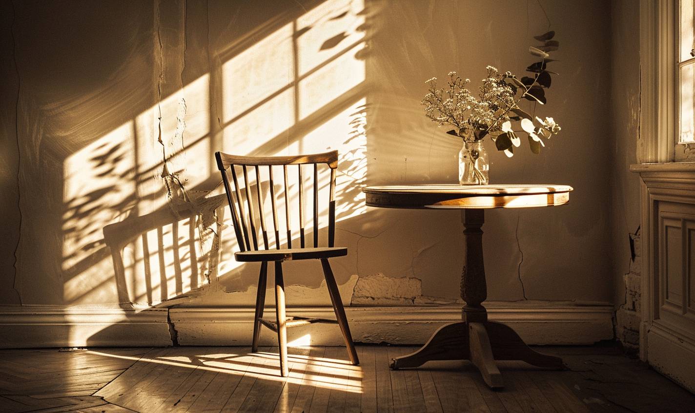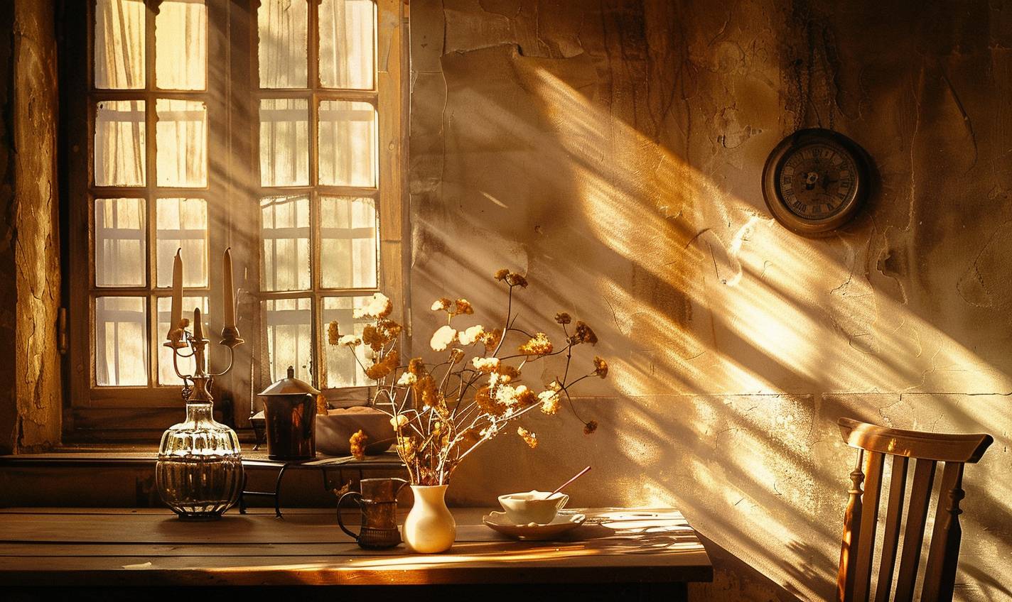 Scène nostalgique avec ton sépia chaud et décor ancien