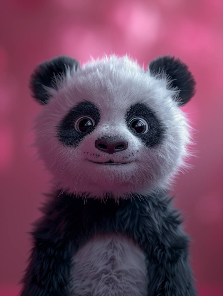 an anime adorable panda, slightly fluffy, with rich expressions of happiness and joyful, 3d plush texture, against a pink background, in the style of q version, 4k, rich details with minimal elements --ar 3:4 --stylize 522 --v 6.0