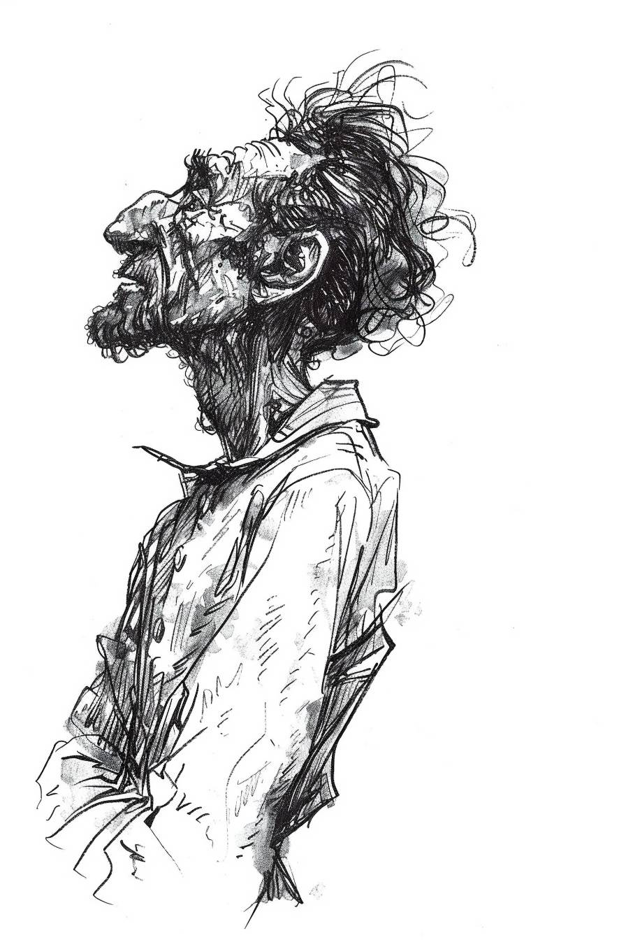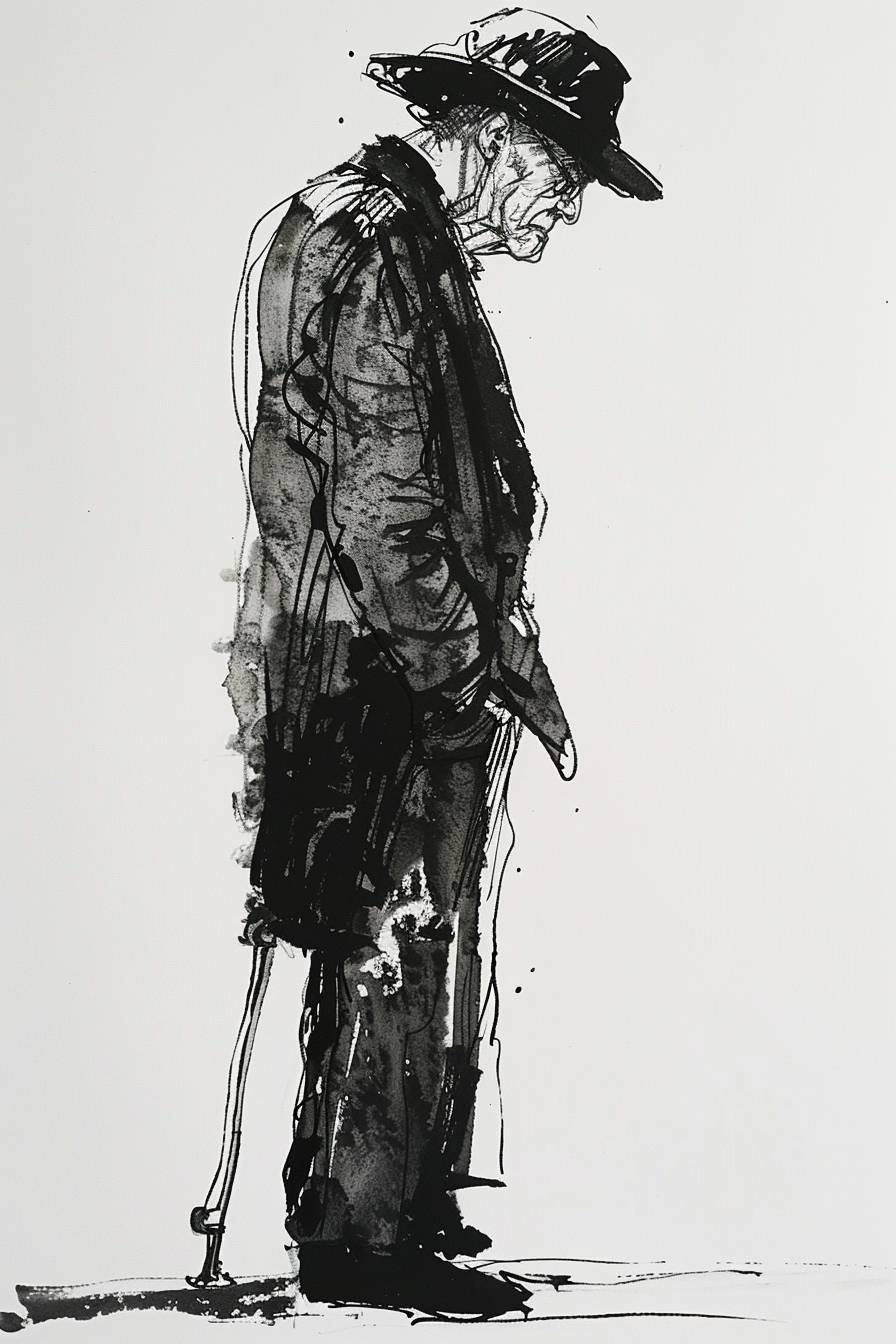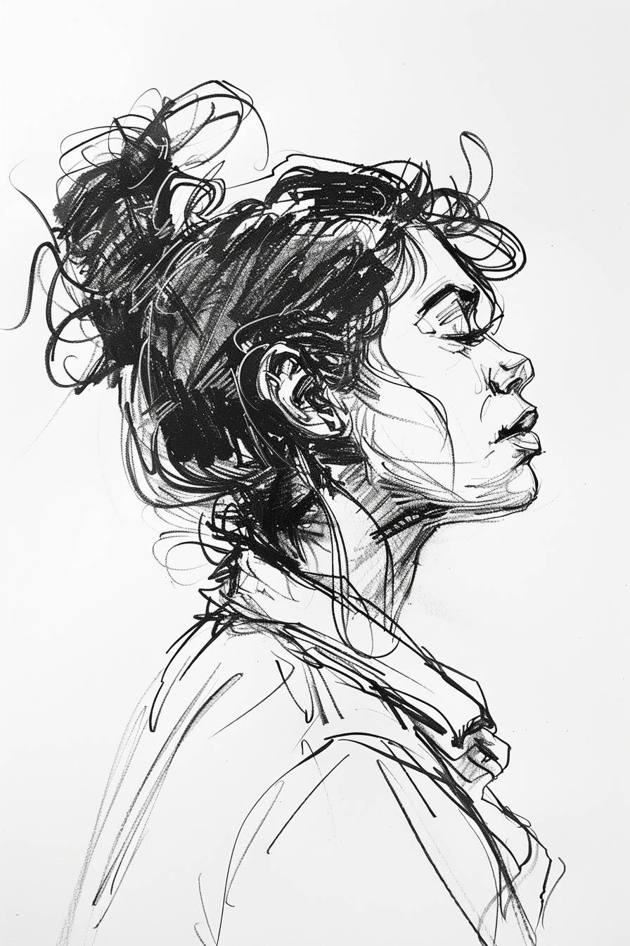 Art d'encre de personnage dans le style de Margaret Olley, vue de côté