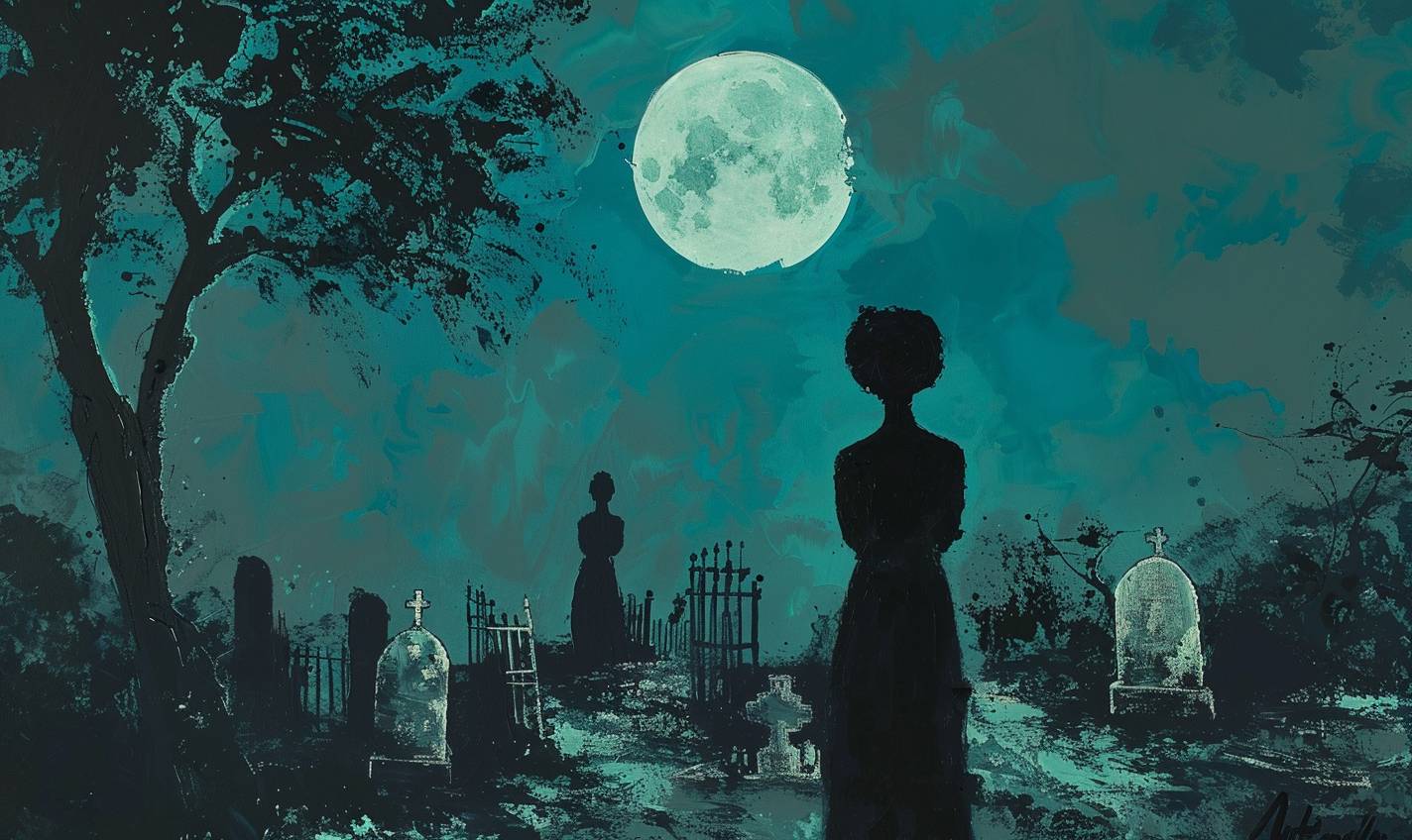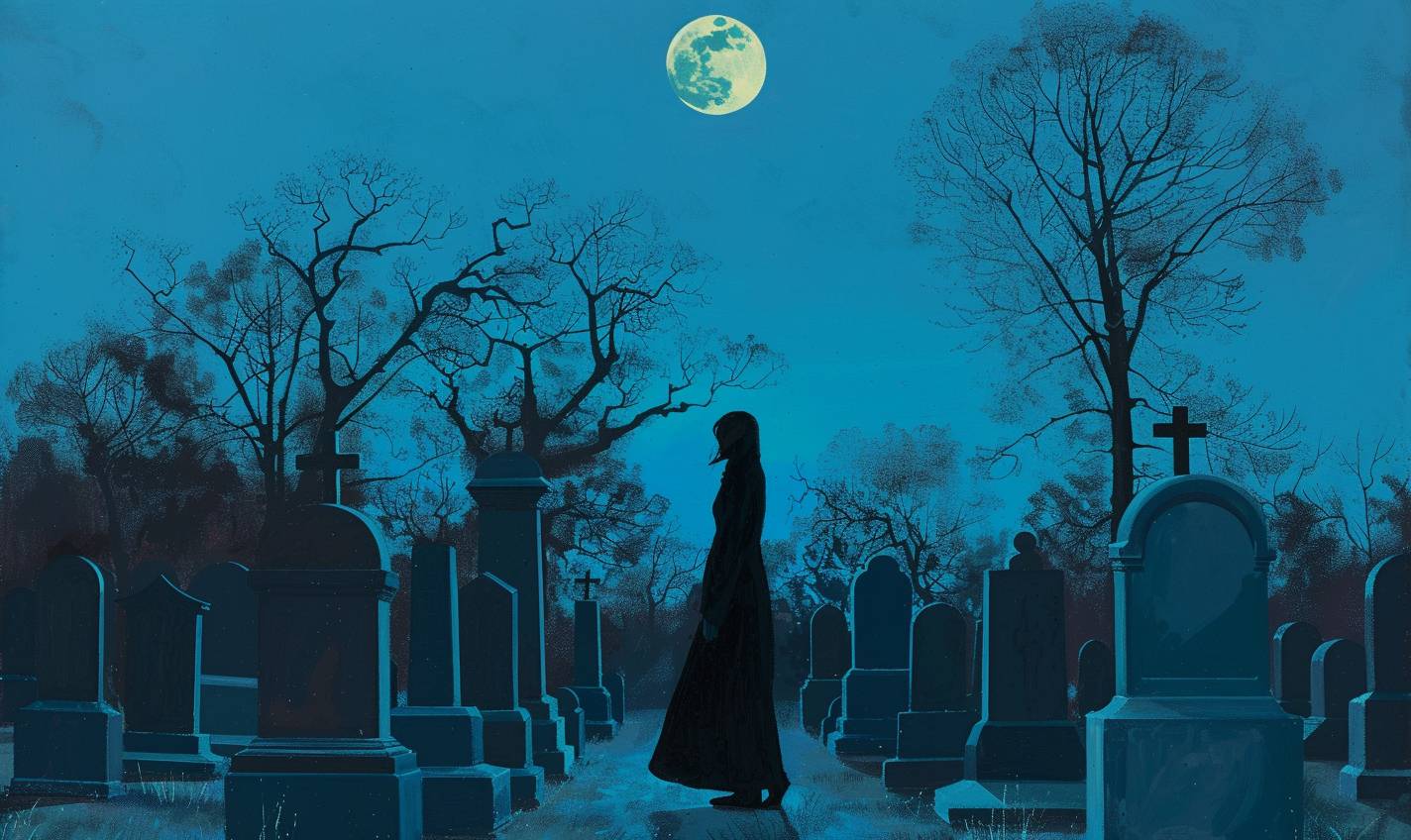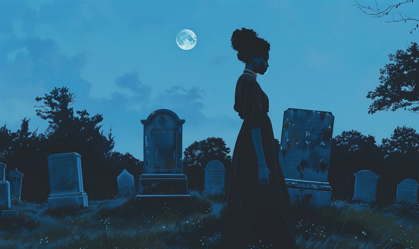 Cimetière étrange sous la lumière de la lune