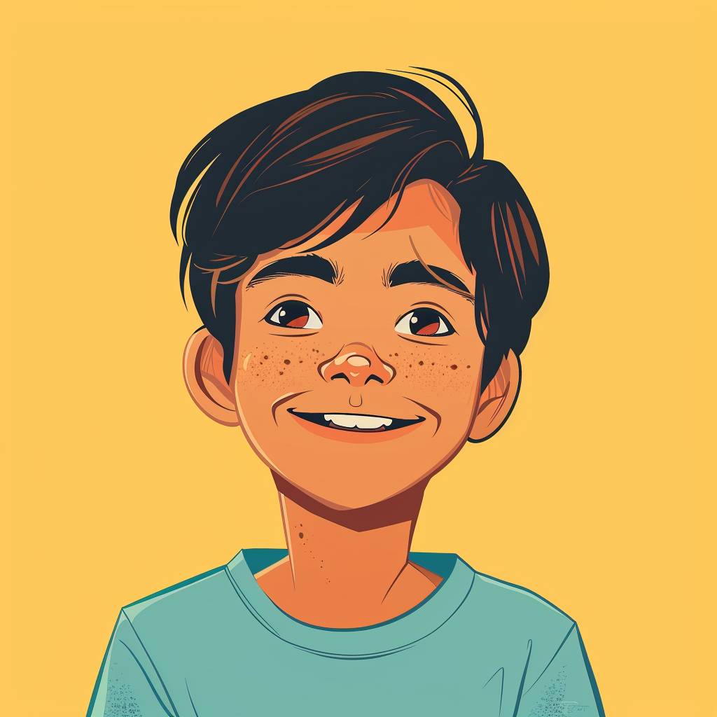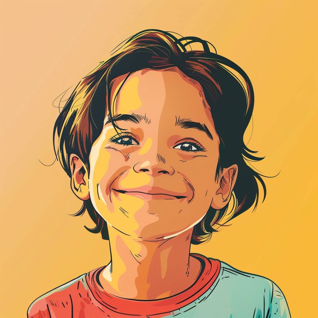 Un portrait d'un enfant souriant dans un style de bande dessinée lumineux