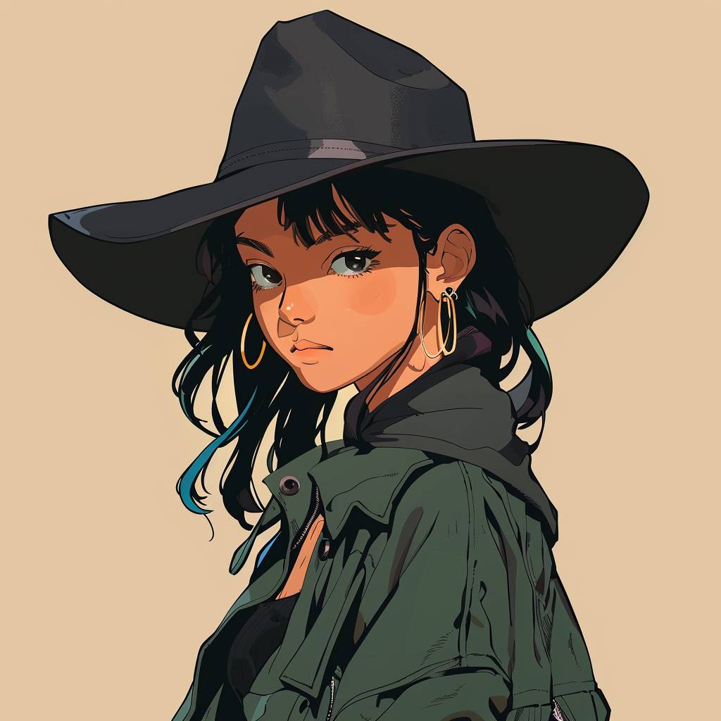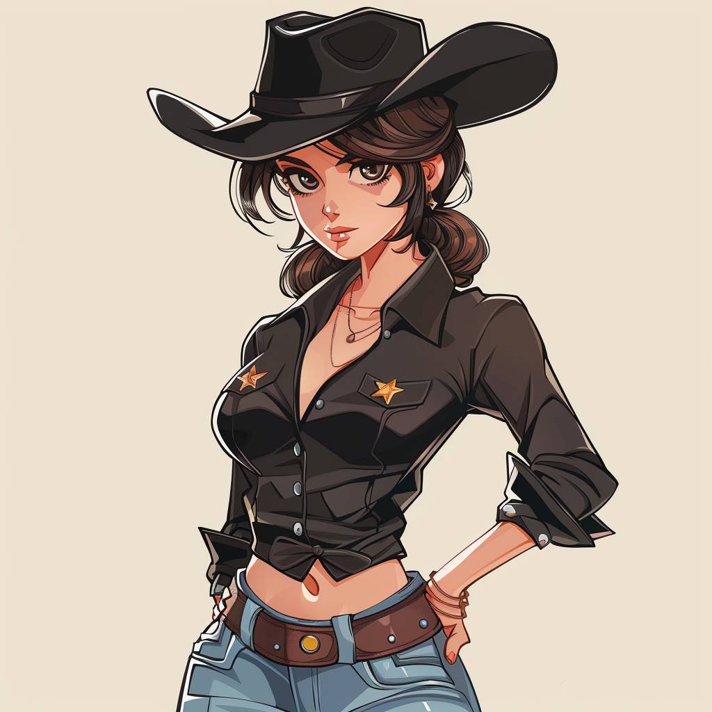 A cartoon illustration of a [description of the reference image], [mood] at the camera | dressed as [character] | western anime | Cartoon character design | flat colors only | High resolution digital illustration --v 6.0