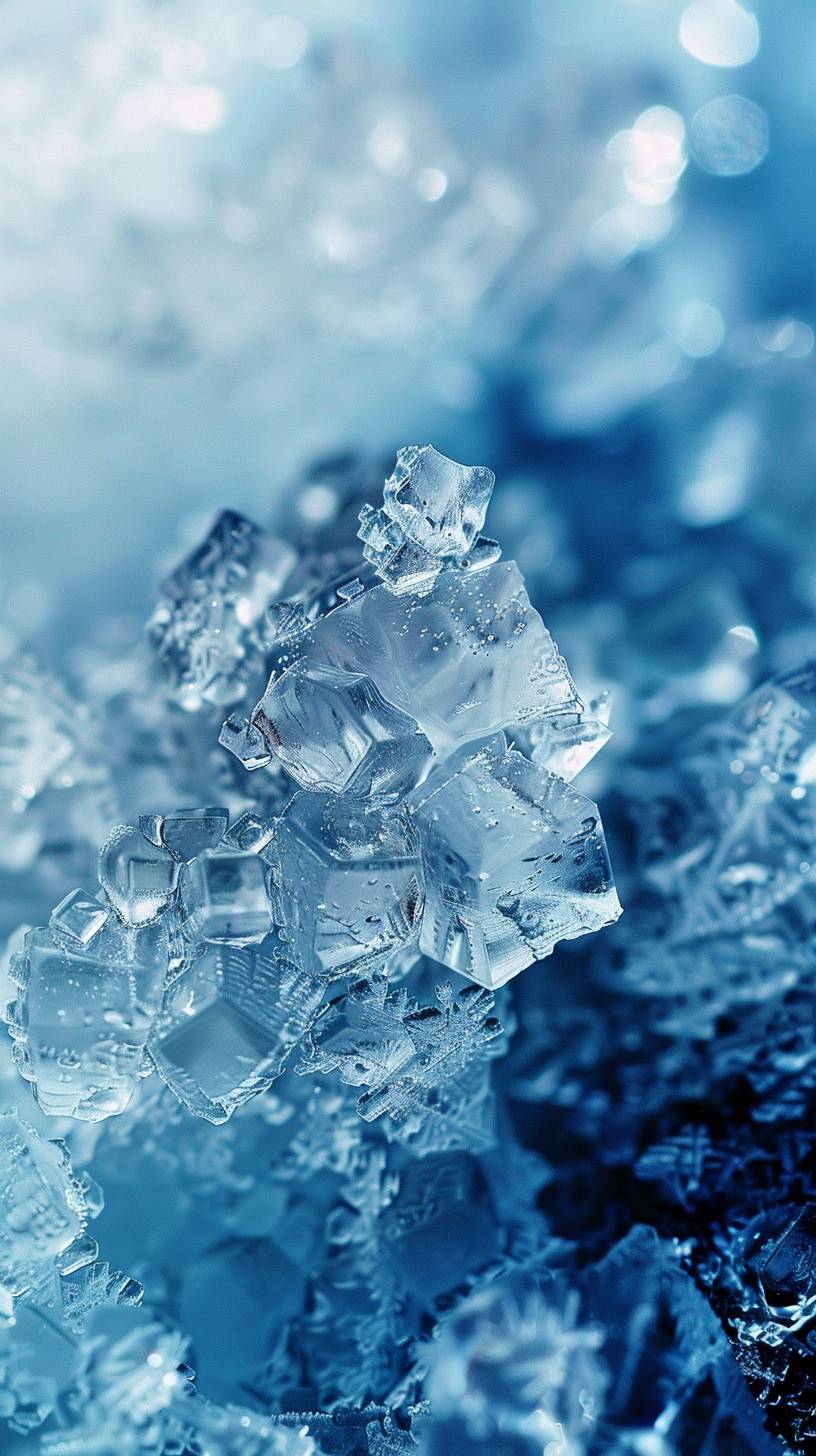 Ephemerality,ice elemental,random color,an extremely delicate and beautiful, lonely, The color palette features cool blues ,the natural, --ar 9:16 --v 6.0