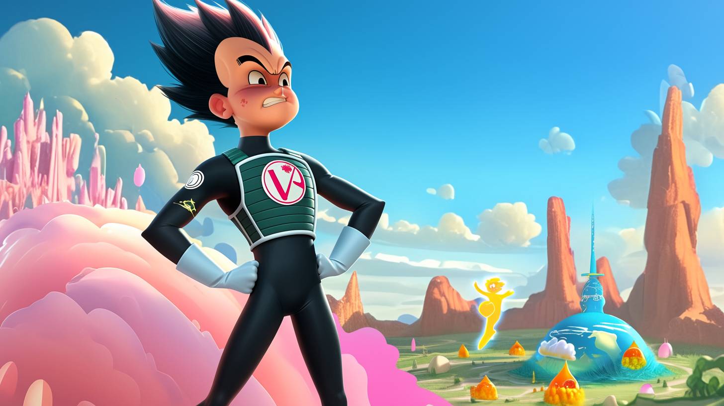 A simple drawing of Vegeta, in the style of Allie Brosh with simple lines, flat colors and a stick figure, minimalistic, simple background --ar 16:9 --style raw --sref 1877220954 --niji 6