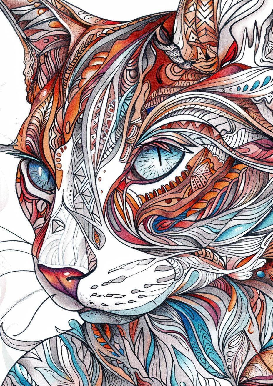 Please create an adult colouring book , please use only the color of white and black. Create realistic and artistically expressive portraits of animals. Capture the vibrant colors and intricate details that make each animal unique. Whether it's a home cat , Siamese , bring out the essence of each creature in a way that is both visually stunning and emotionally resonant. Use a diverse color palette and experiment with artistic styles to convey the diversity and beauty of the animal kingdom. Let your creativity flow and evoke a sense of awe and appreciation for the natural world through these animal portraits , --ar 5:7