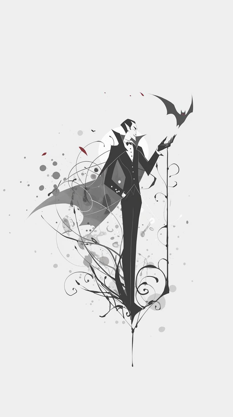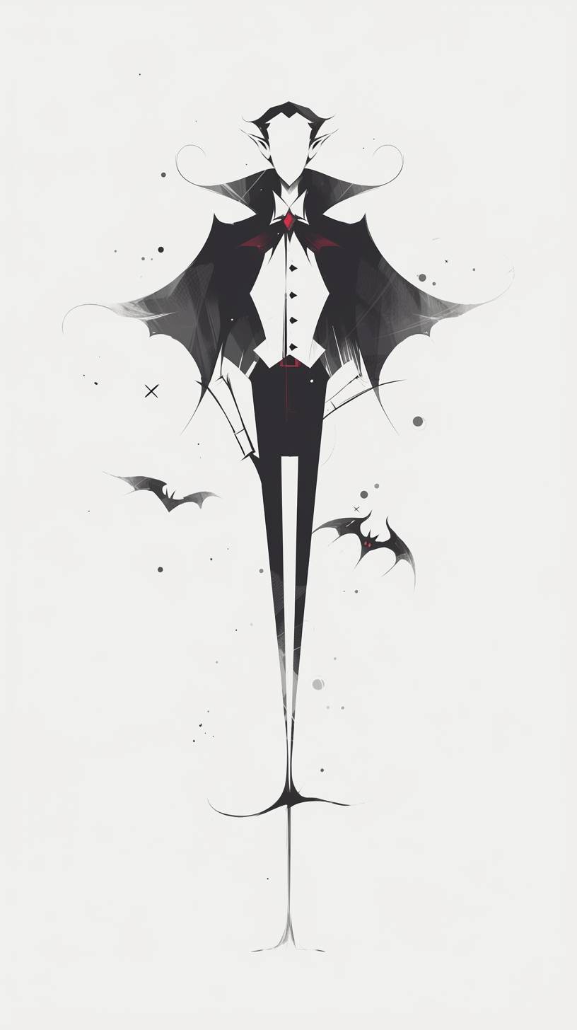 A simple drawing of Dracula, in the style of Allie Brosh with simple lines, flat colors and a stick figure, minimalistic, simple background --ar 9:16 --style raw --sref 3639691787 --niji 6