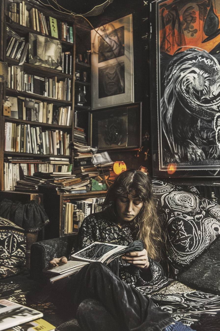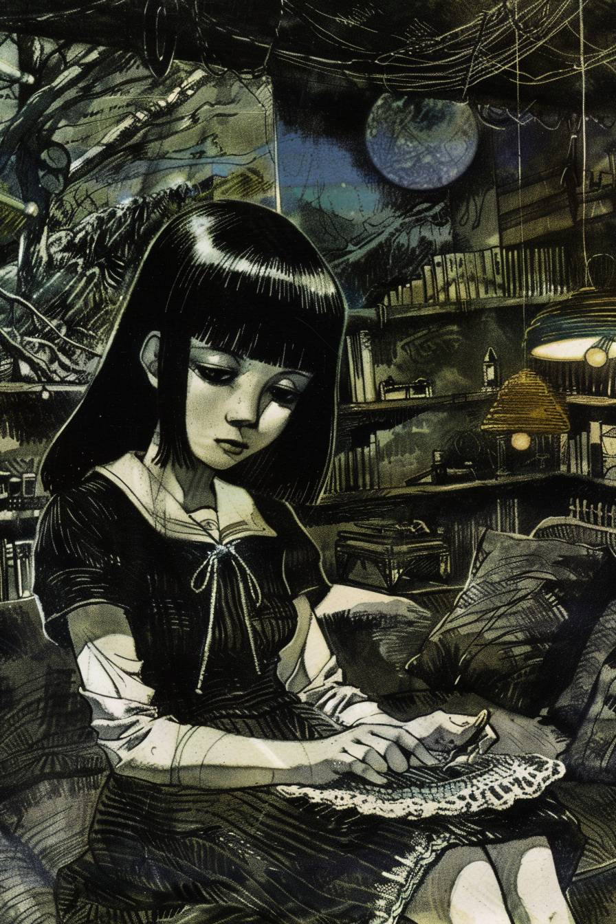 Saki is crocheting in a cozy living room. --ar 2:3 --sref 191 --v 6.0
