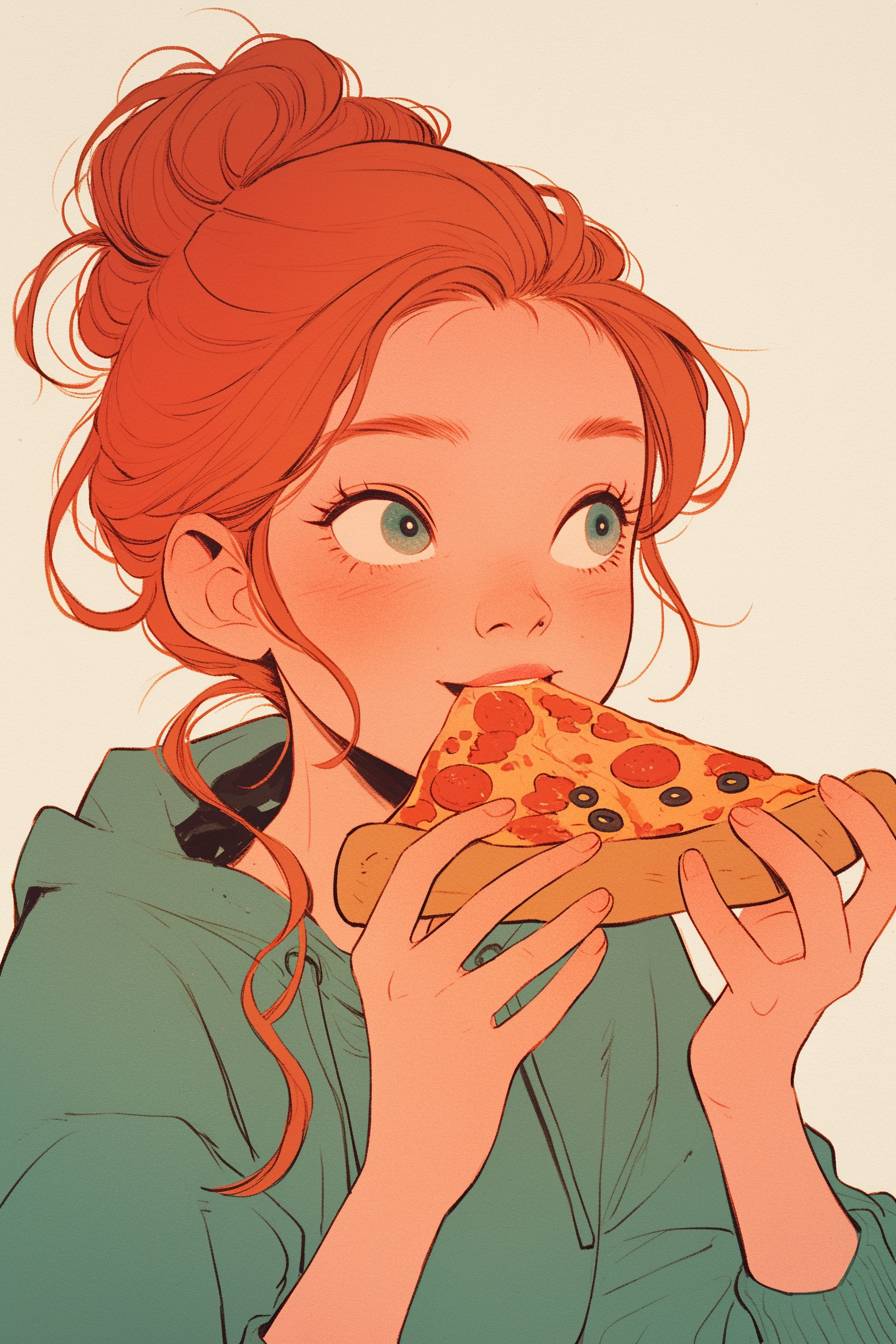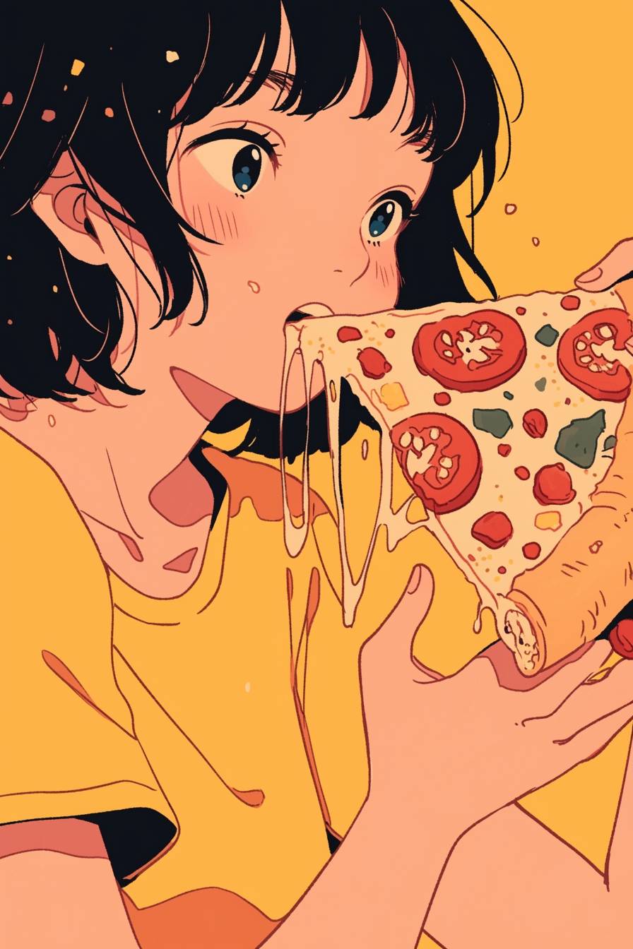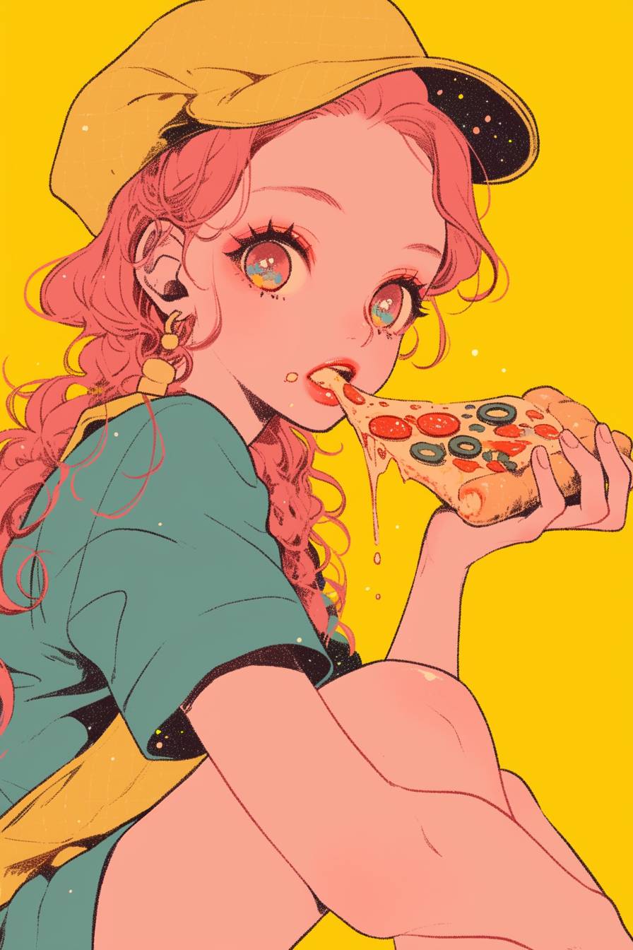 Une petite fille mignonne mange une pizza avec un coloriage parfait.