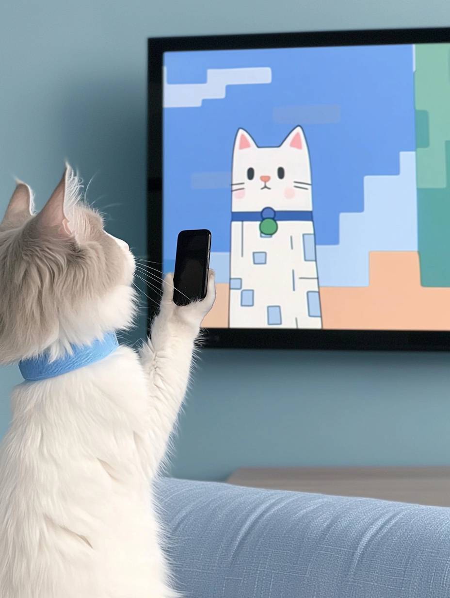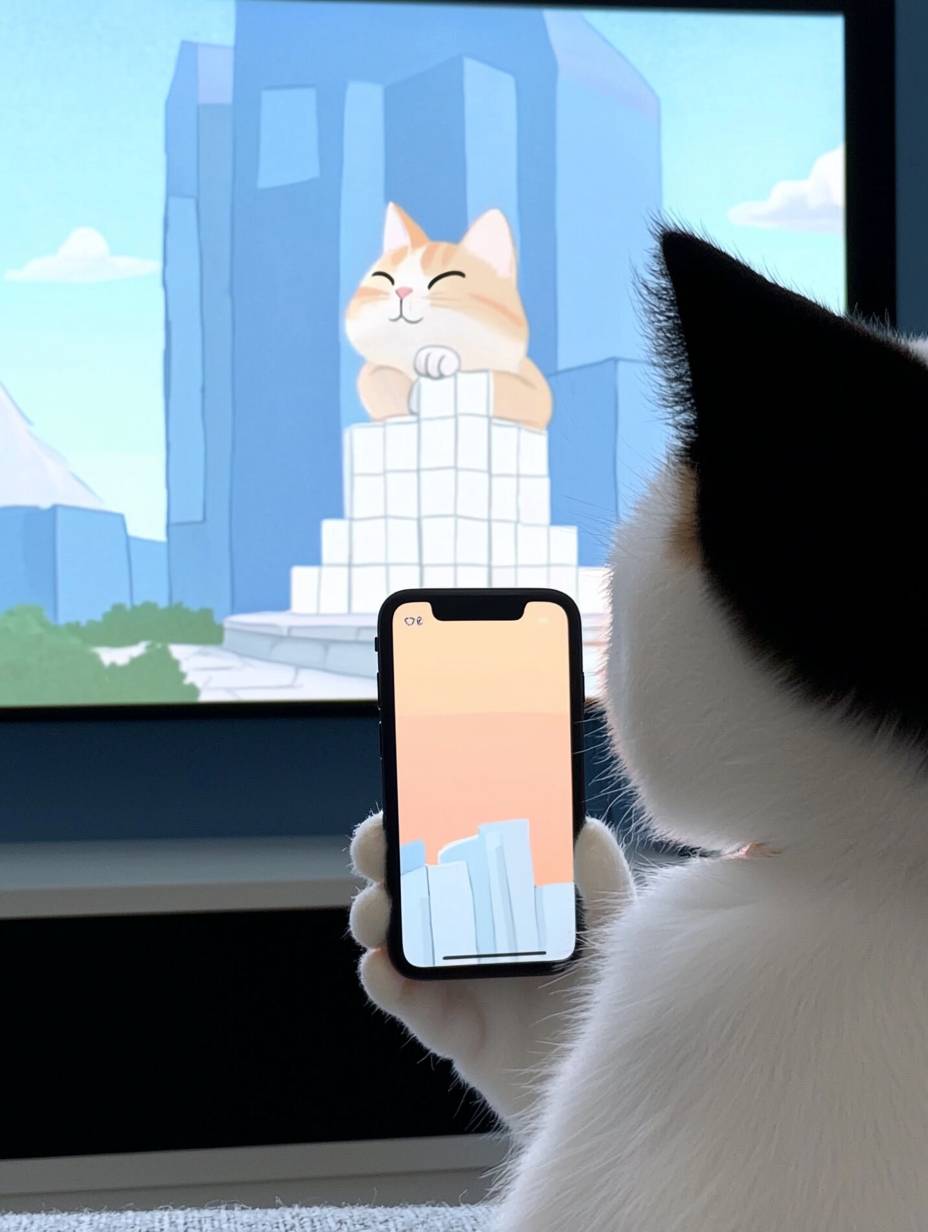 Un chat utilisant un iPhone pour faire défiler TikTok