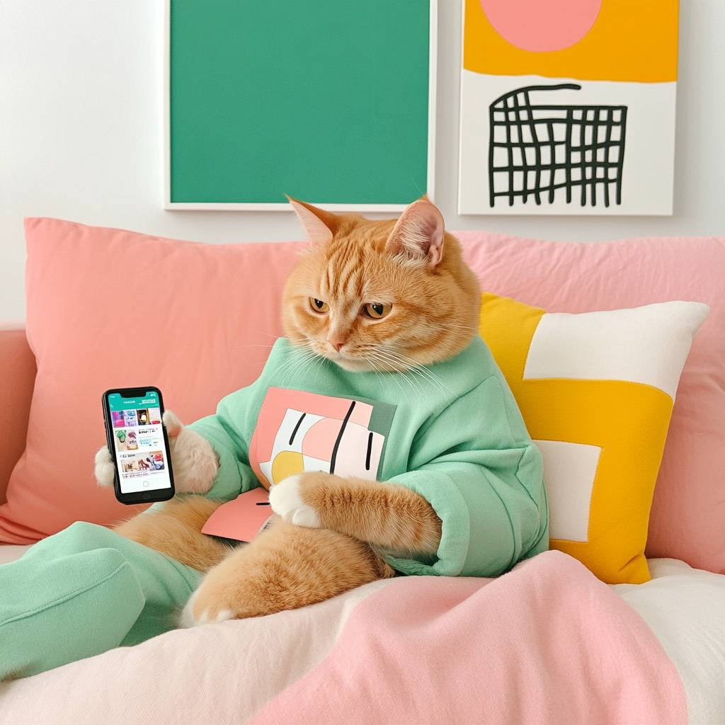 Un chat utilise un iPhone pour faire défiler TikTok.