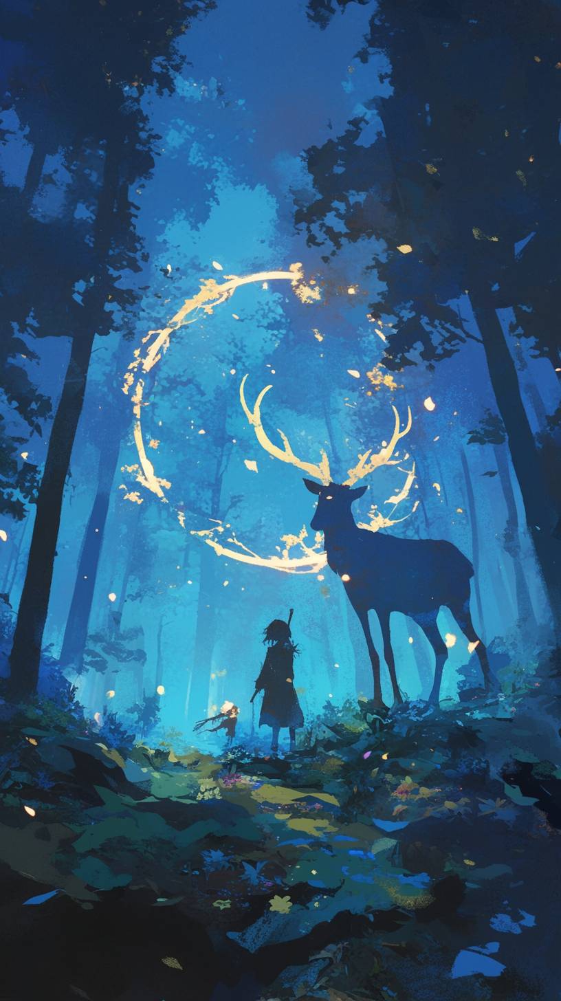 la surveillance du gardien de la forêt, hanté, mystérieux, beau, ambiances sombres, mystique, anime, lofi, nature dans l'art