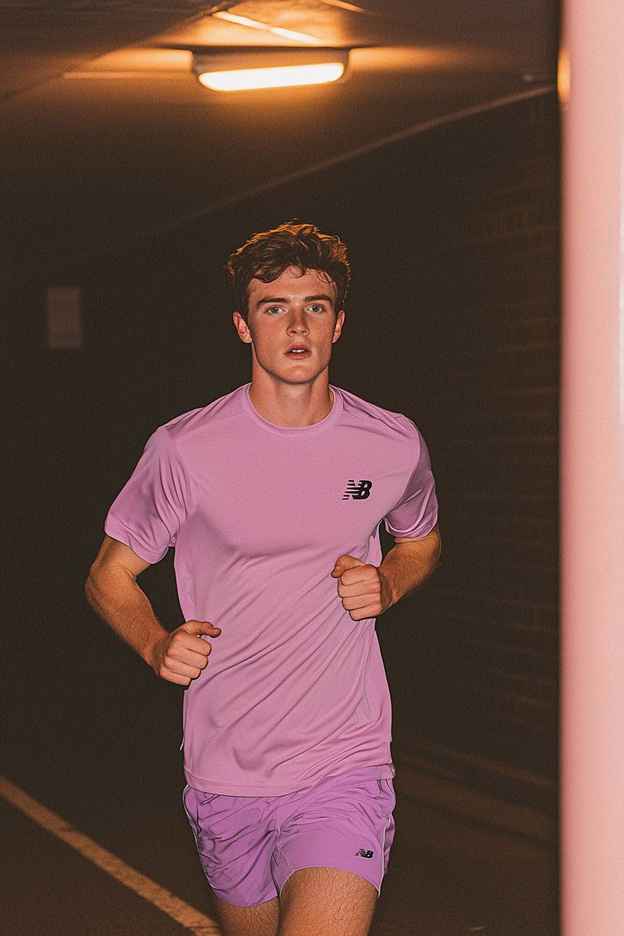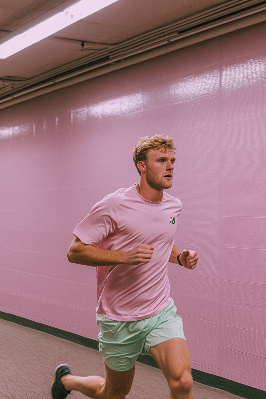 ニューバランスのCMでは、モデルがニューバランスのスポーツウェアを着て高速で走っており、動きのブレが見られます。