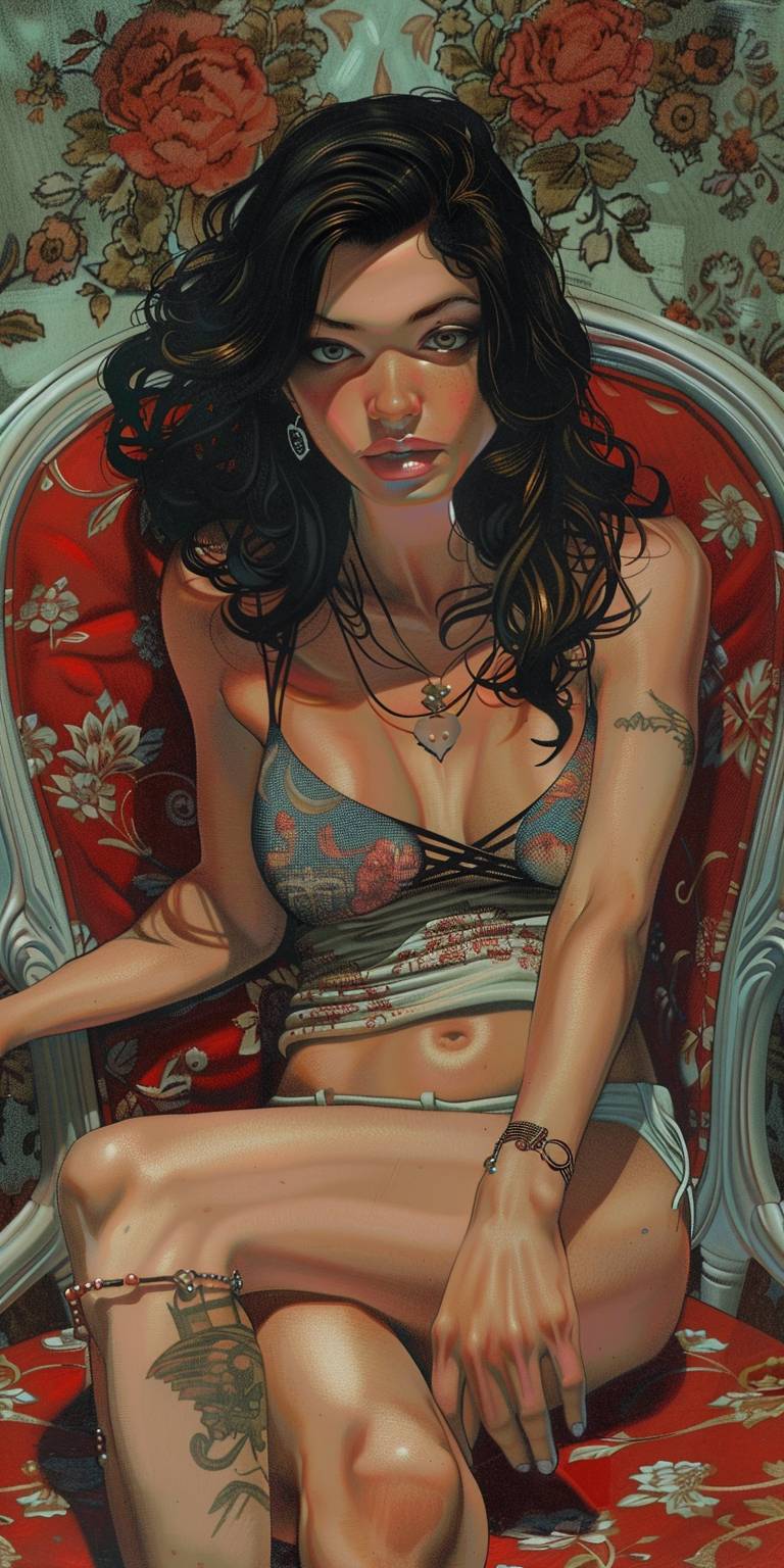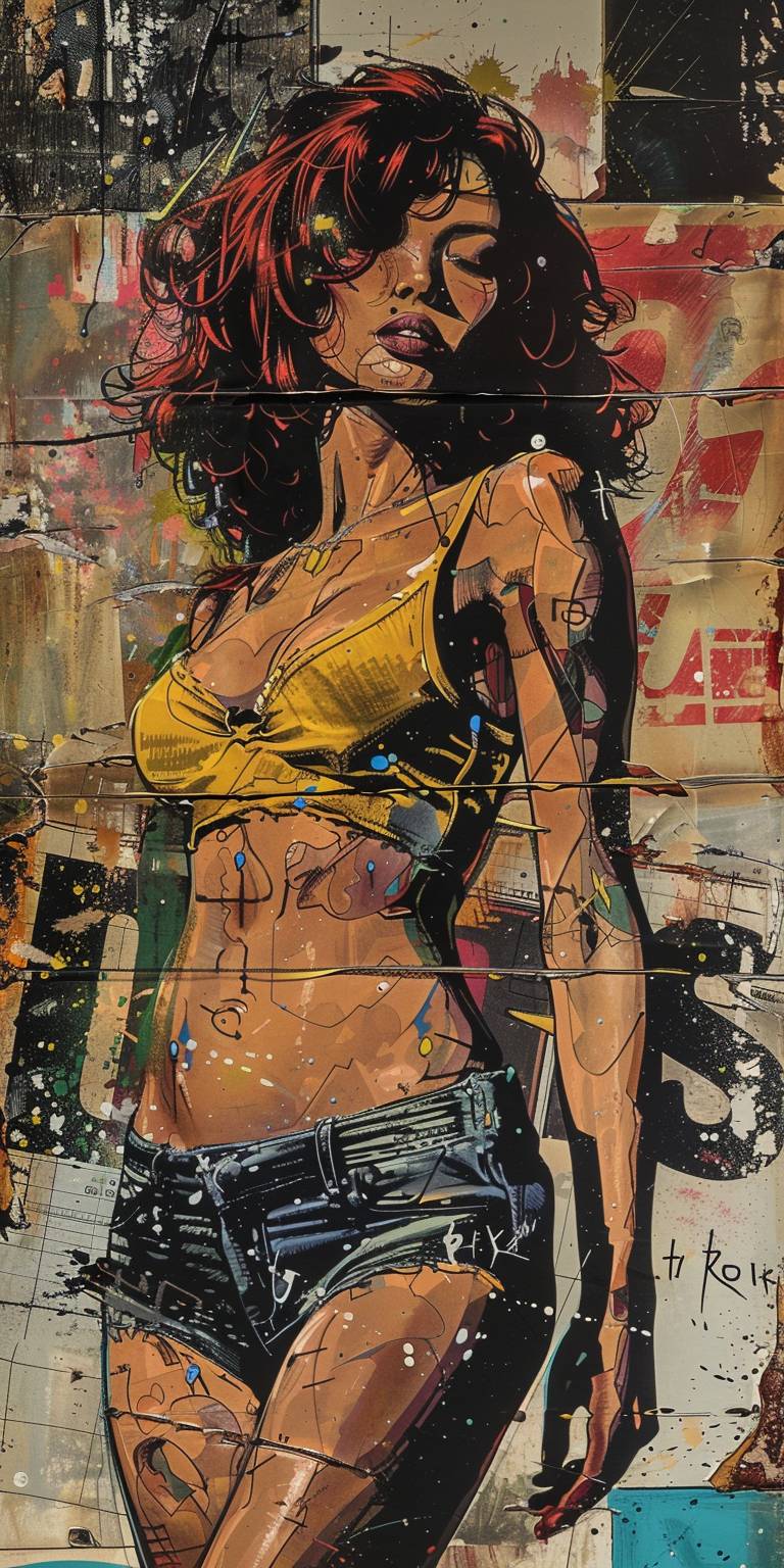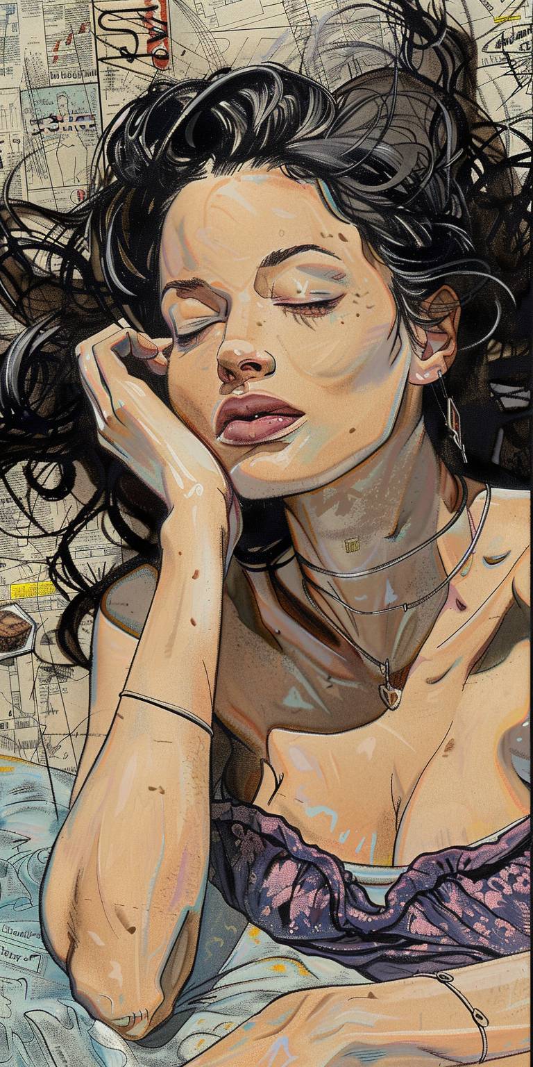 comic strip art, woman, 30 years old, high detail --ar 1:2 --v 6.0