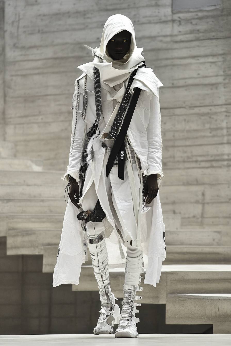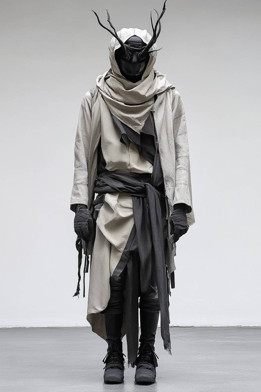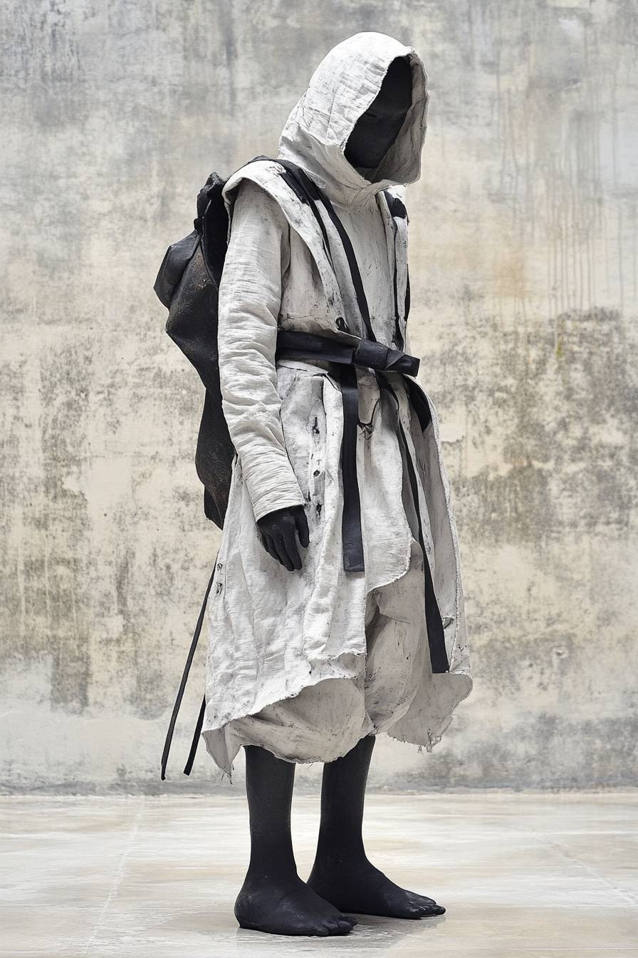 Cai Guo-Qiang's futuristic urban samurai outfit. Design by Rick Owens --style raw --v 6.1 --ar 2:3