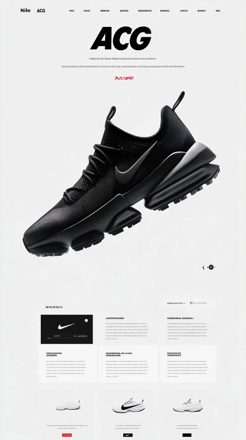 「ナイキACG」のウェブサイトのモダンUIデザイン