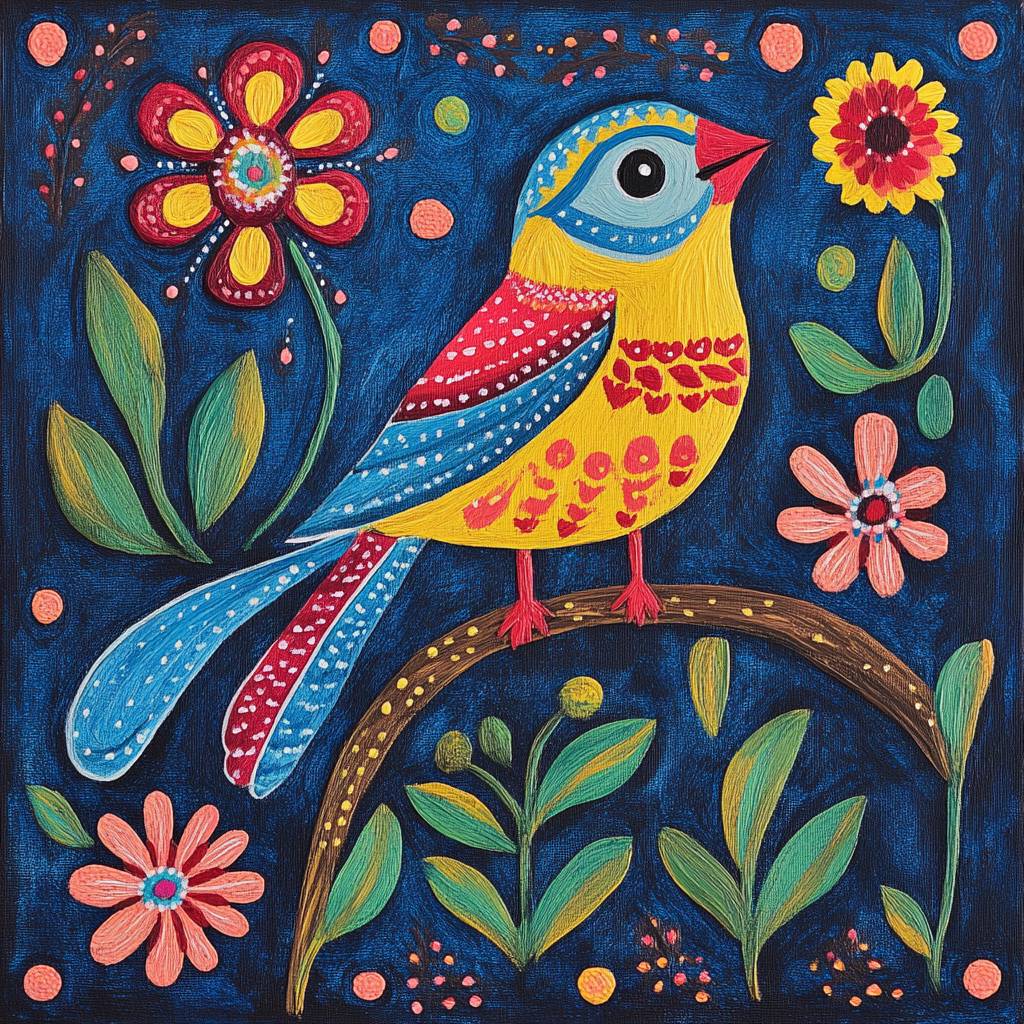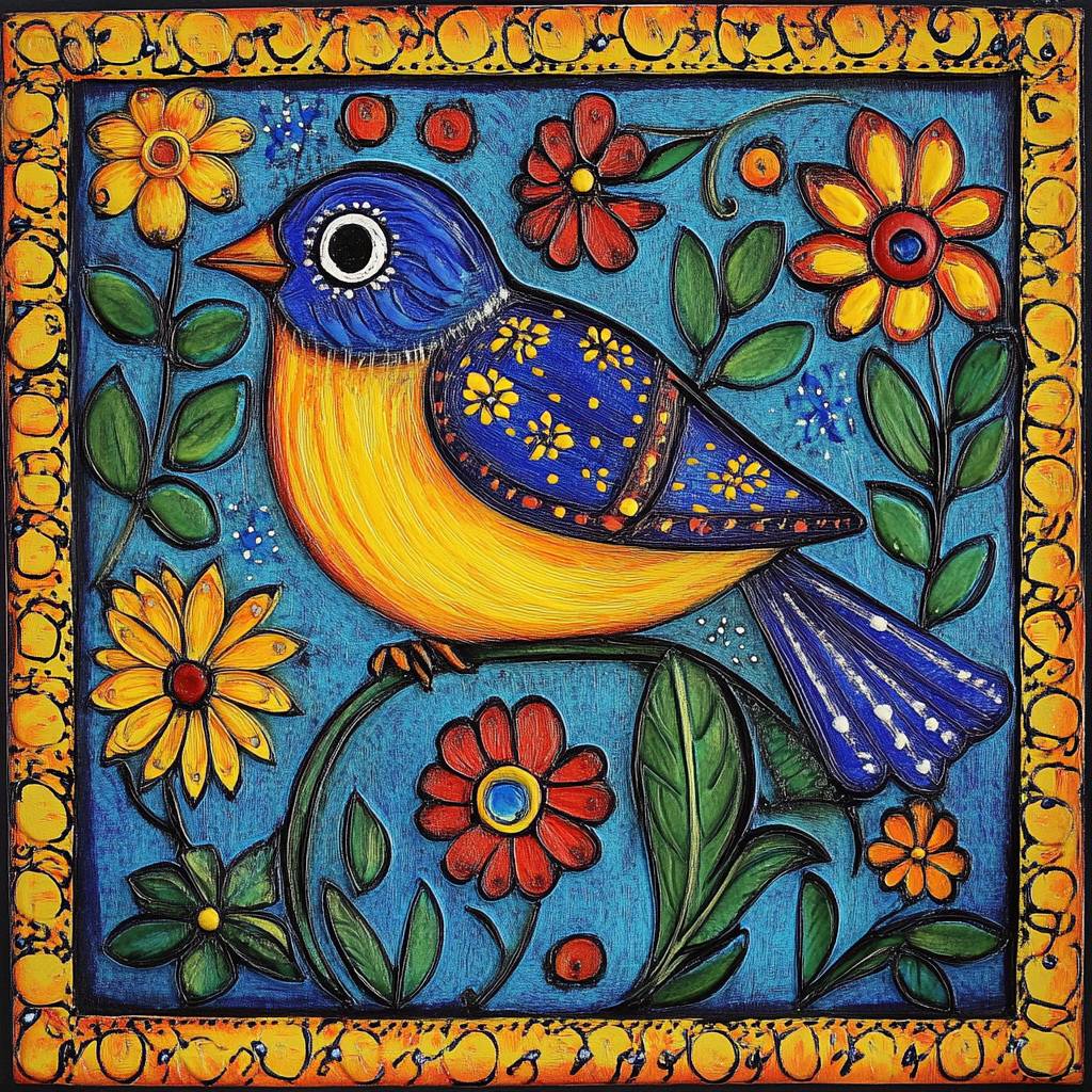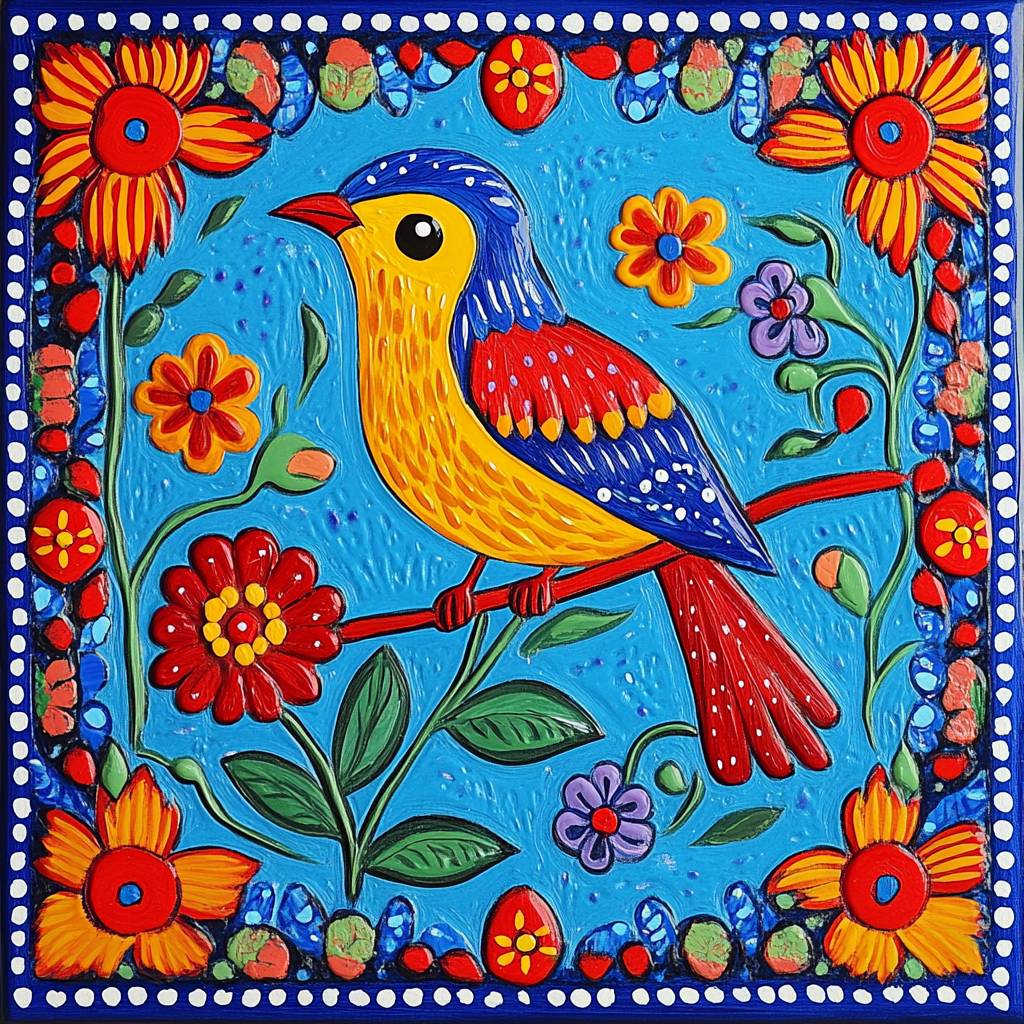 mexican folk art with bird, flower, in blue, yellow, red color US Letter Size --v 6.1