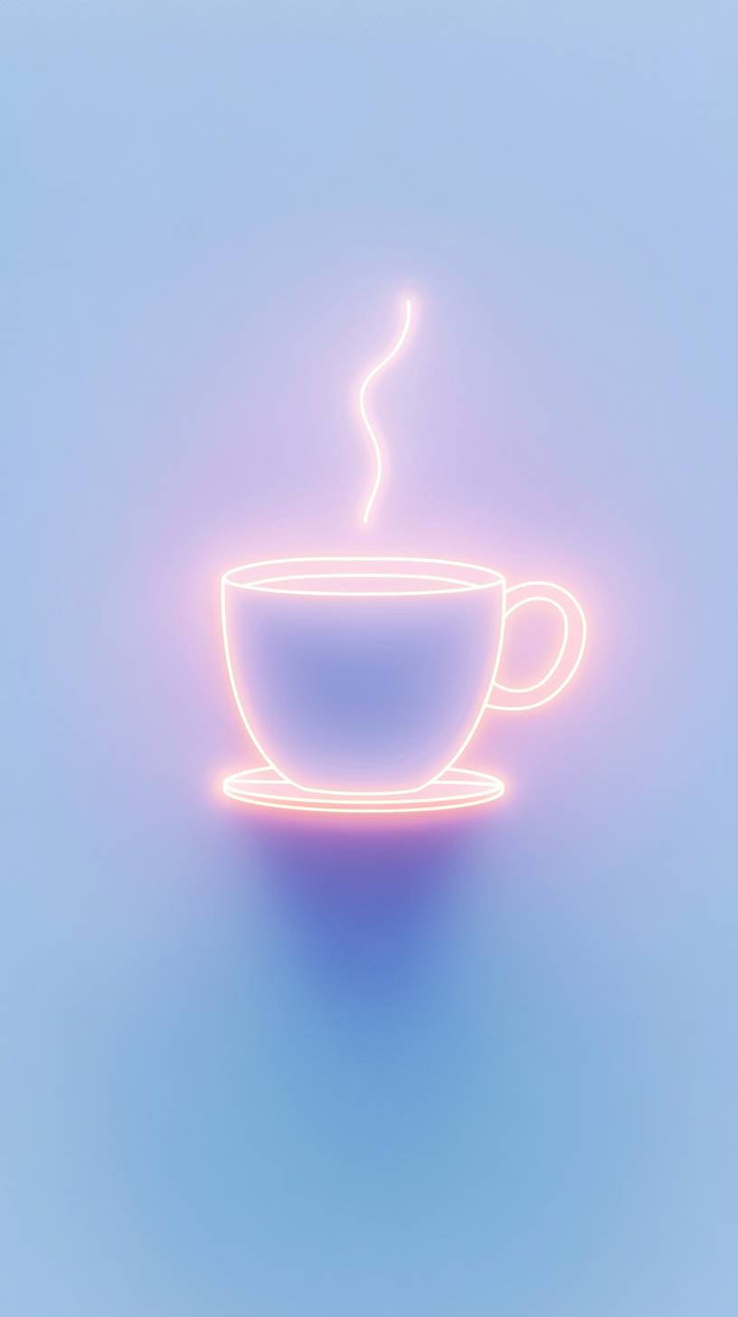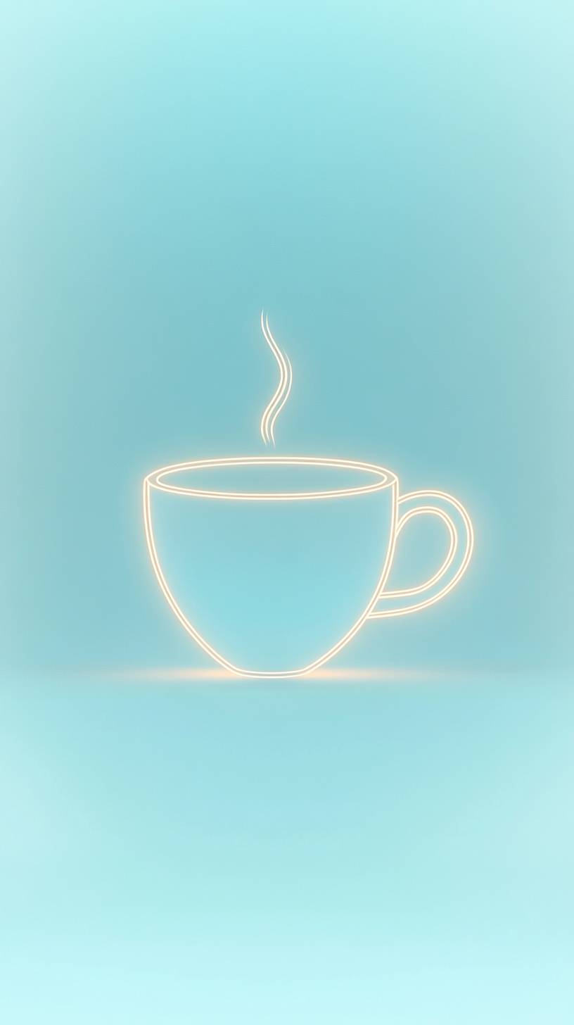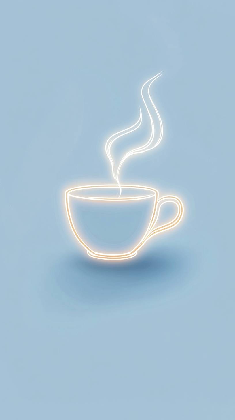 minimalist style, glowing outline of a coffee cup centered on a pale blue background, only the outline, no object --ar 9:16 --v 6.1