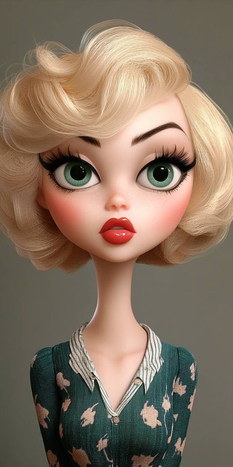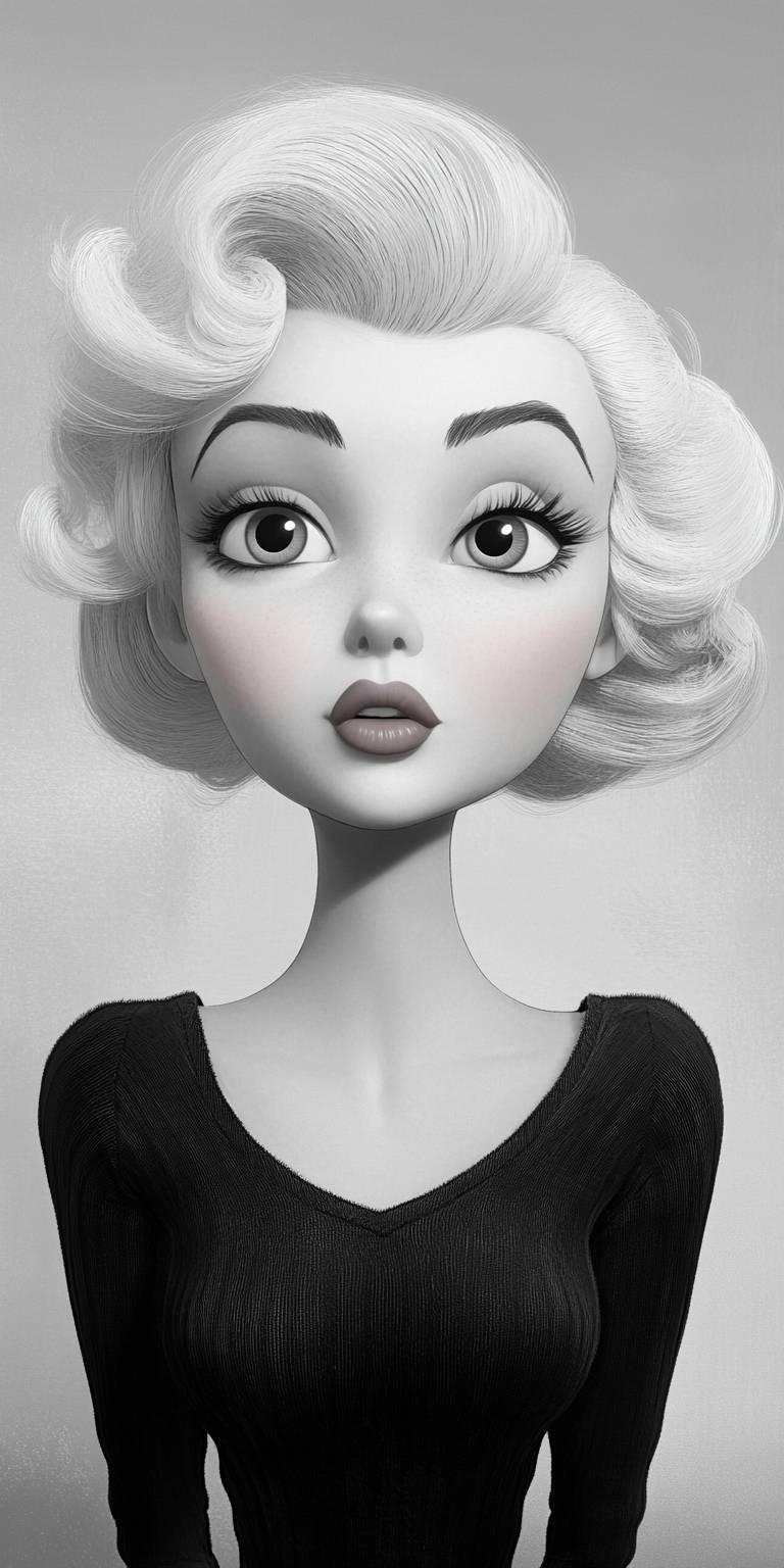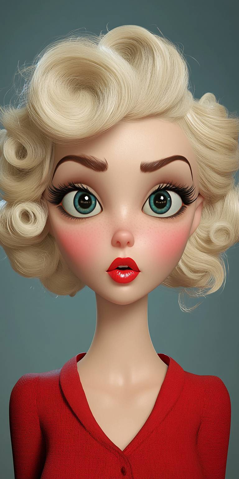 大きな目を持つマリリン・モンローがディズニーピクサースタイルで表現され、3Dのキャラクターです。表現力豊かです。