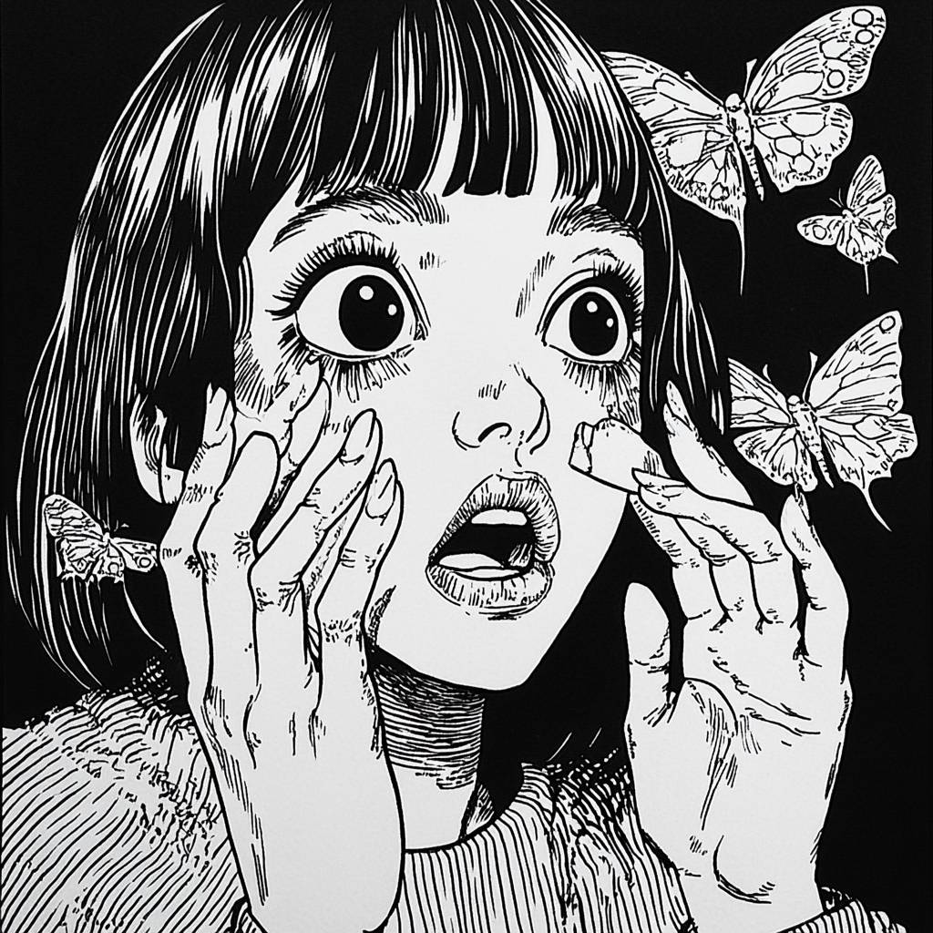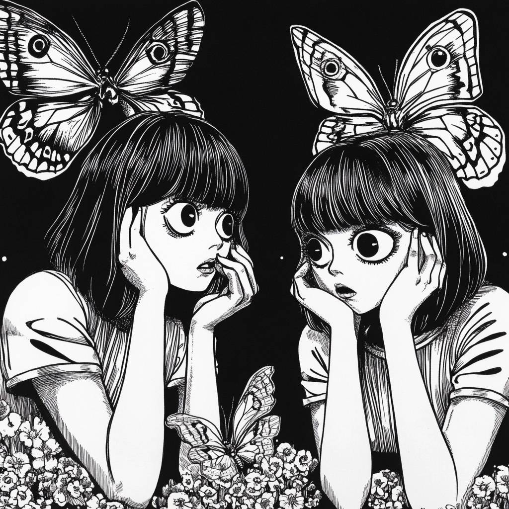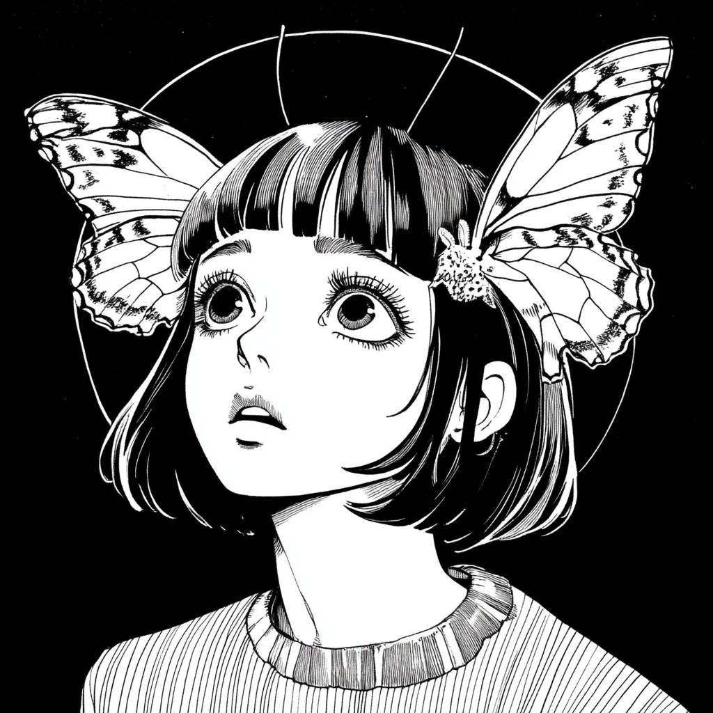 Charles Burns black hole derivative slop let's try one more time I want ink drawing Japanese moth girls okay thanks. --v 6.1