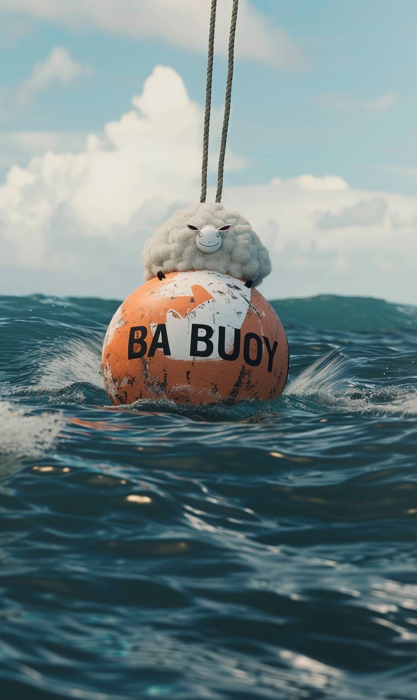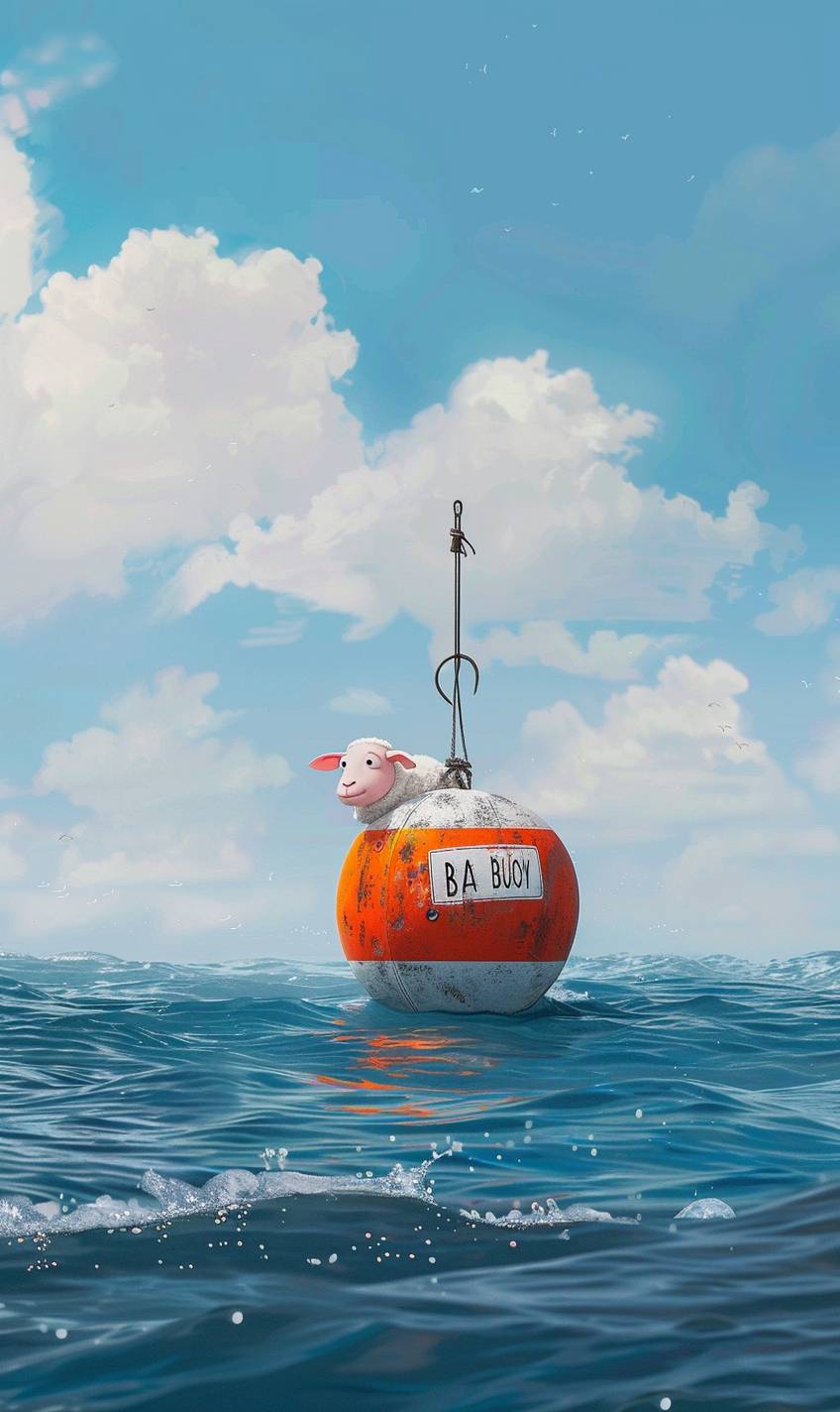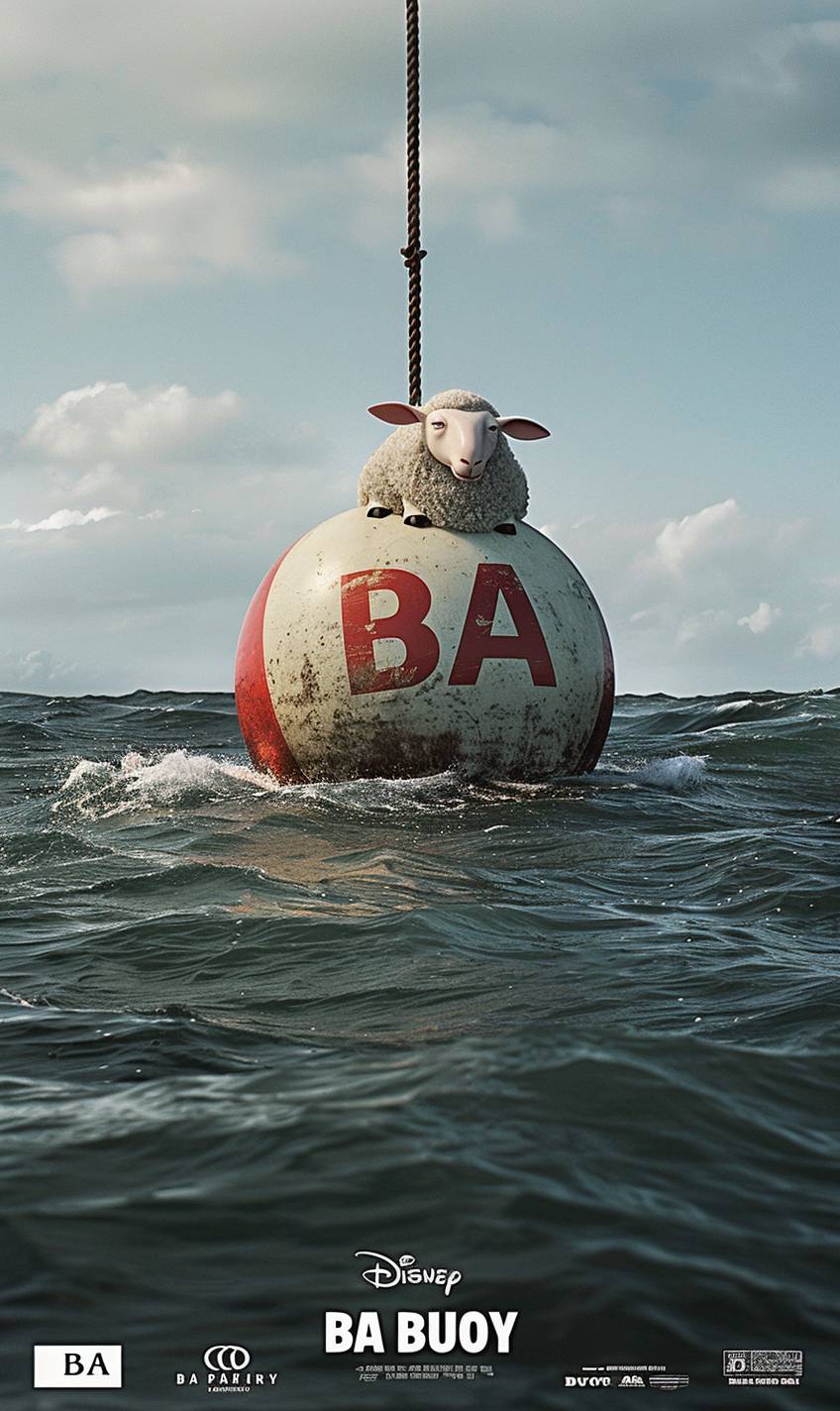 ピクサー映画『BA BA BUOY』のポスタービジュアルには、羊のように見える海の浮標が描かれています。