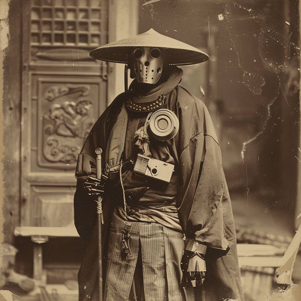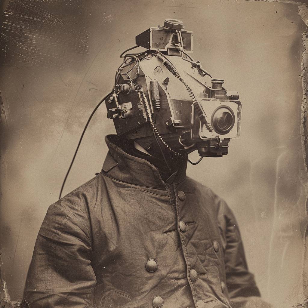 19世紀の写真はサイバーパンクキャラクターを描いています。