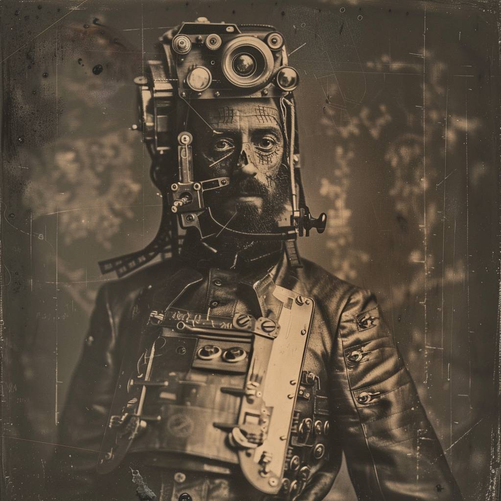 19世紀の写真はサイバーパンクキャラクターを描いています