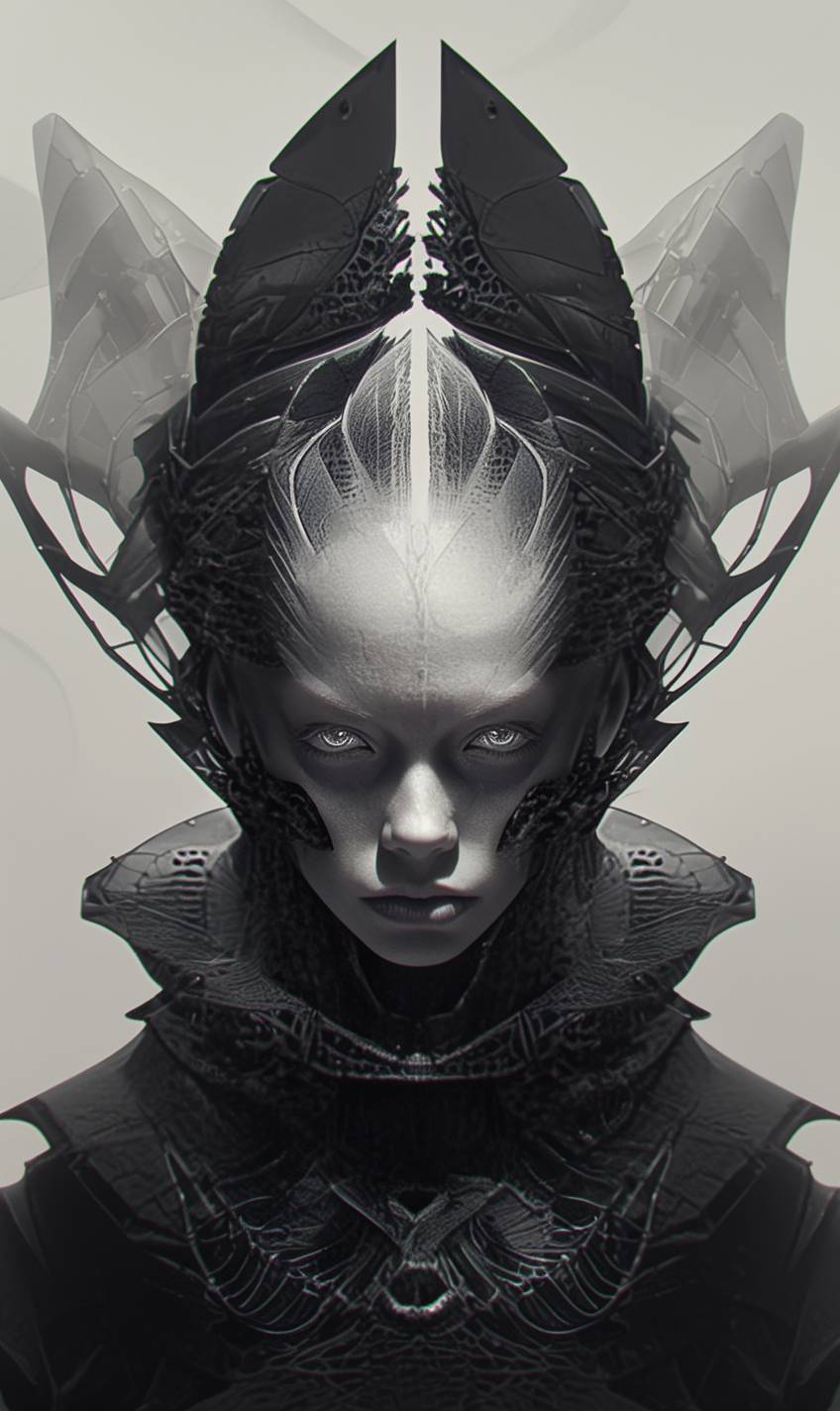 close-up portrait depicting phantasmagoric queen wearing otherworldly crown --sref 303212441 --ar 3:5 --niji 6 --style raw