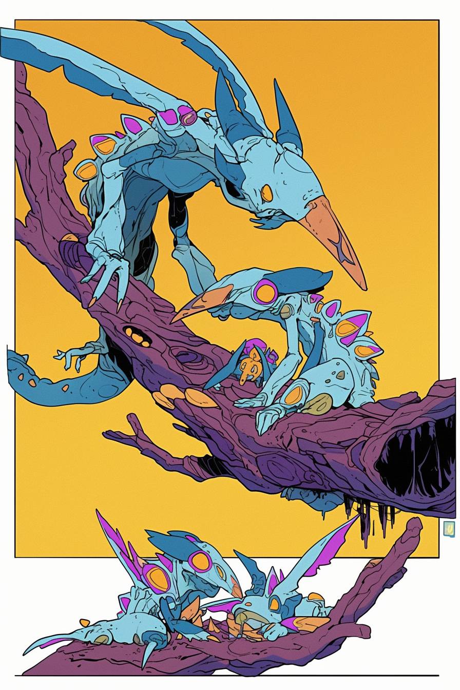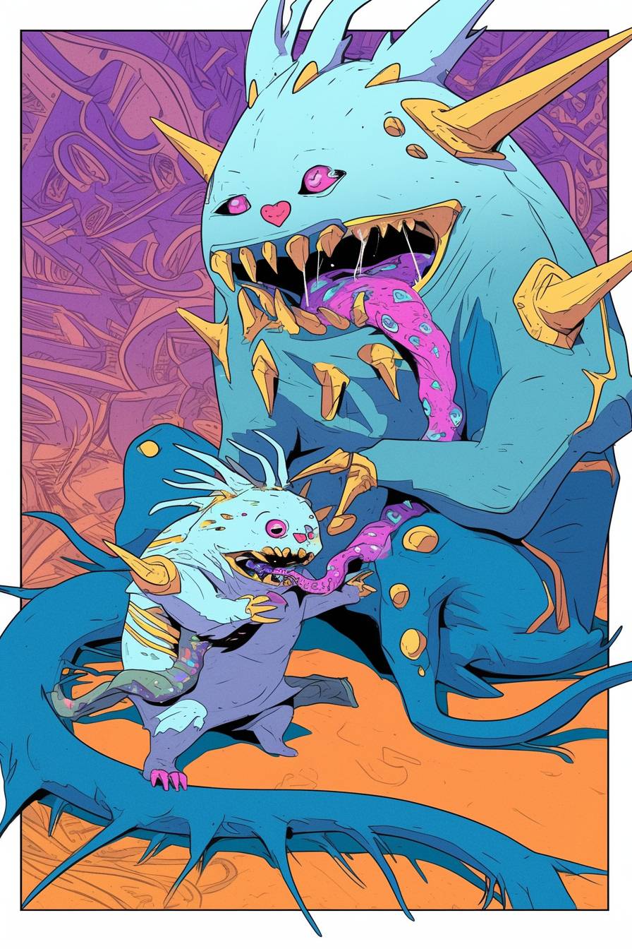 manga comic-strip about Kawaii monster nestling --sref 2942895933 --niji 6 --ar 2:3 --style raw