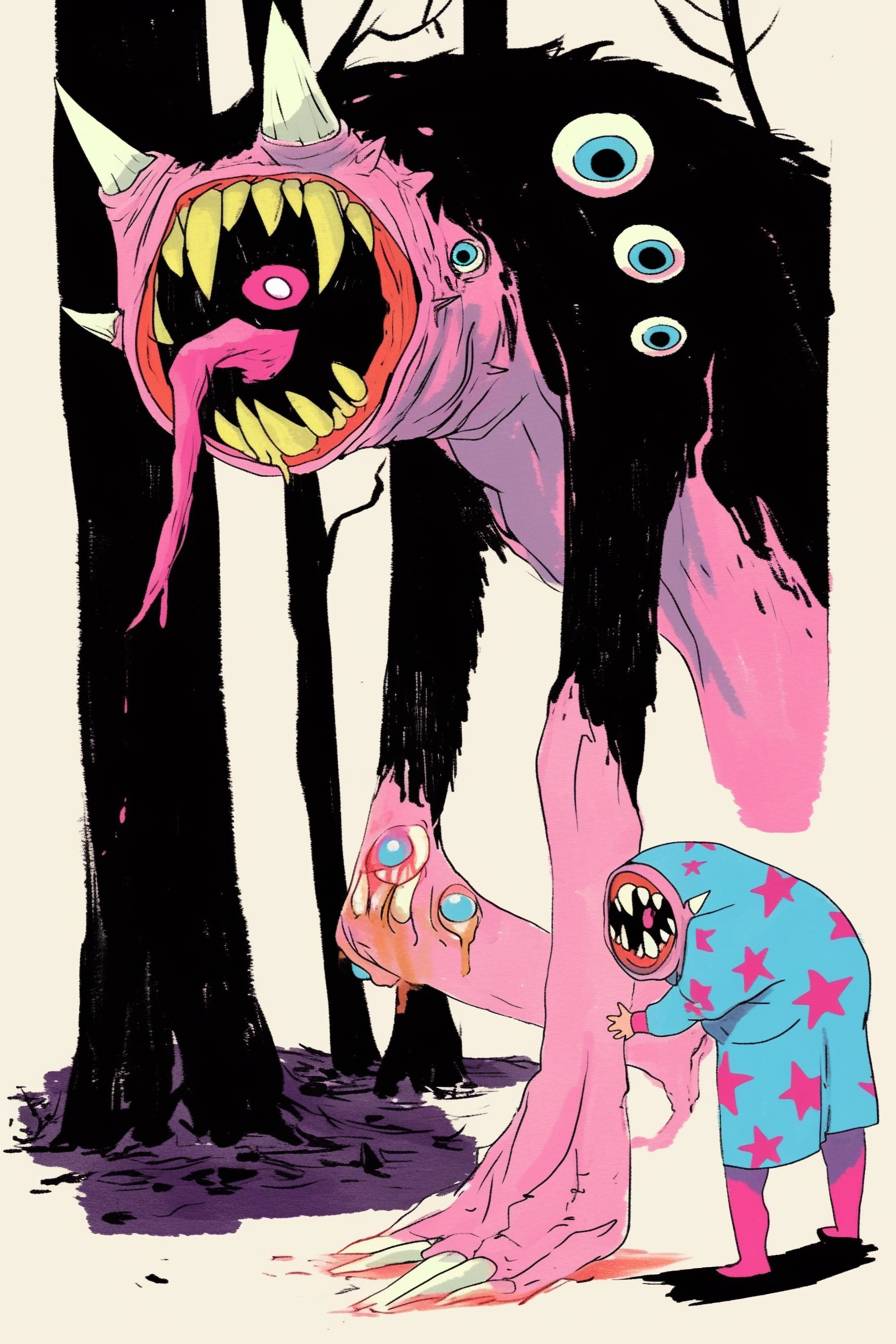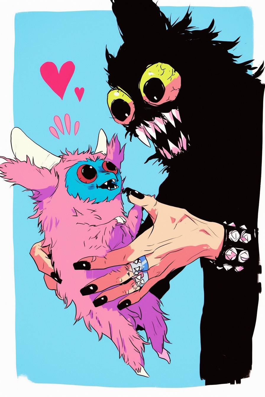 manga comic-strip about Kawaii monster nestling --sref 3783066734 --niji 6 --ar 2:3 --style raw
