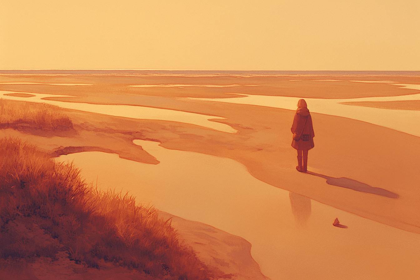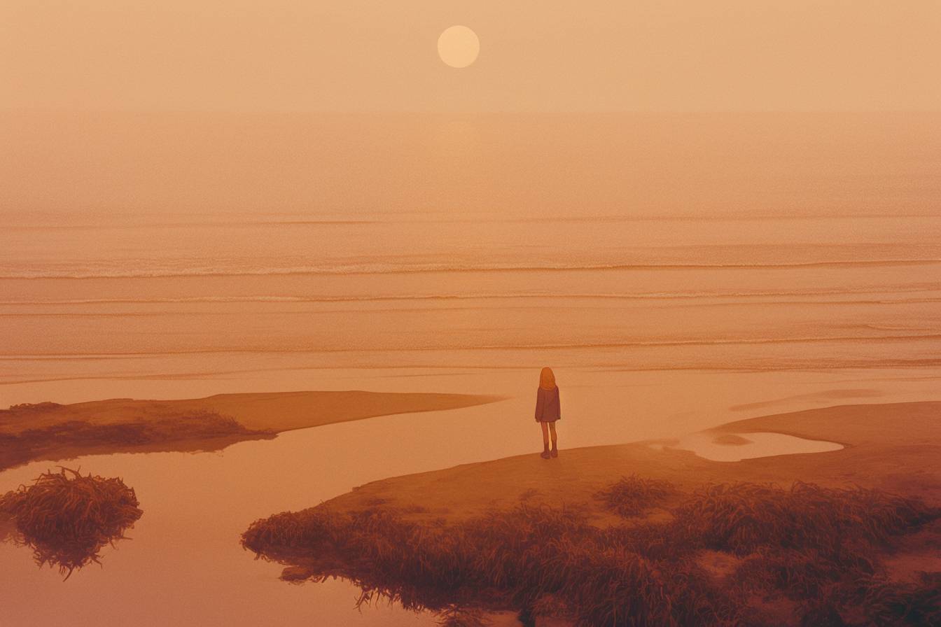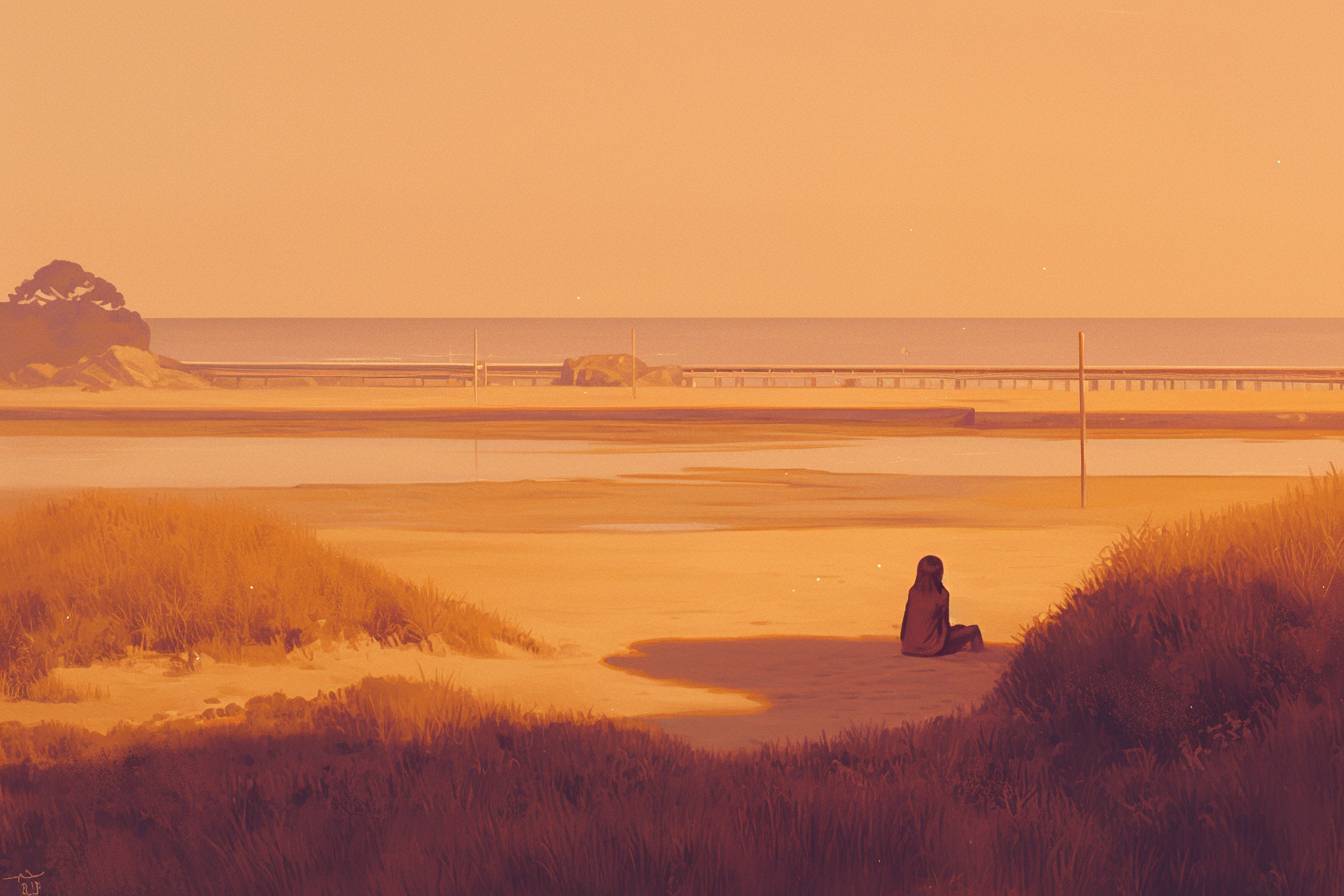 Sunset, by the sea. --sref 4130068682 --ar 3:2 --niji 6