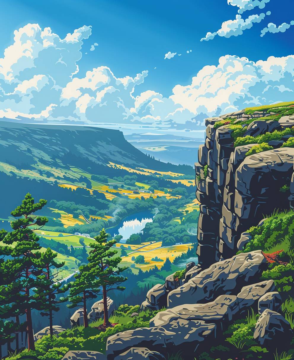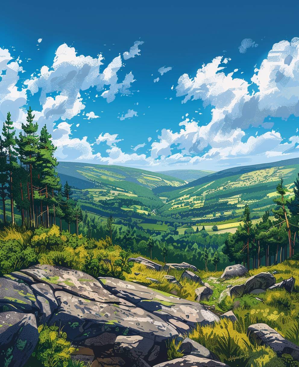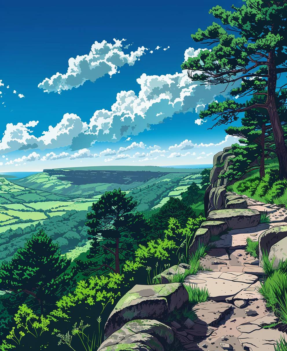 beautiful view of Derwent Edge, peak district, england, summer, blue sky, 2d illustration, --ar 37:45 --stylize 250 --v 6.0