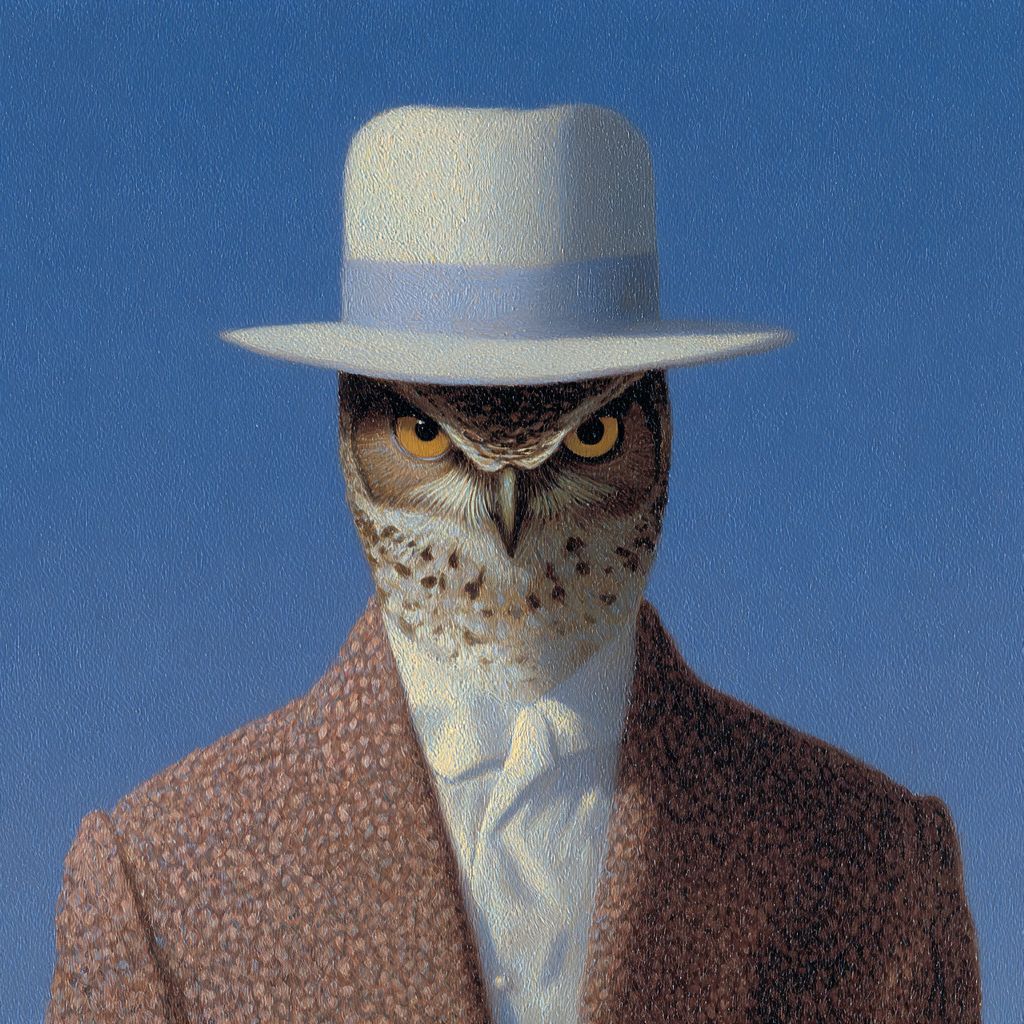 ルネ・マグリットのスタイルの原始的なフクロウ