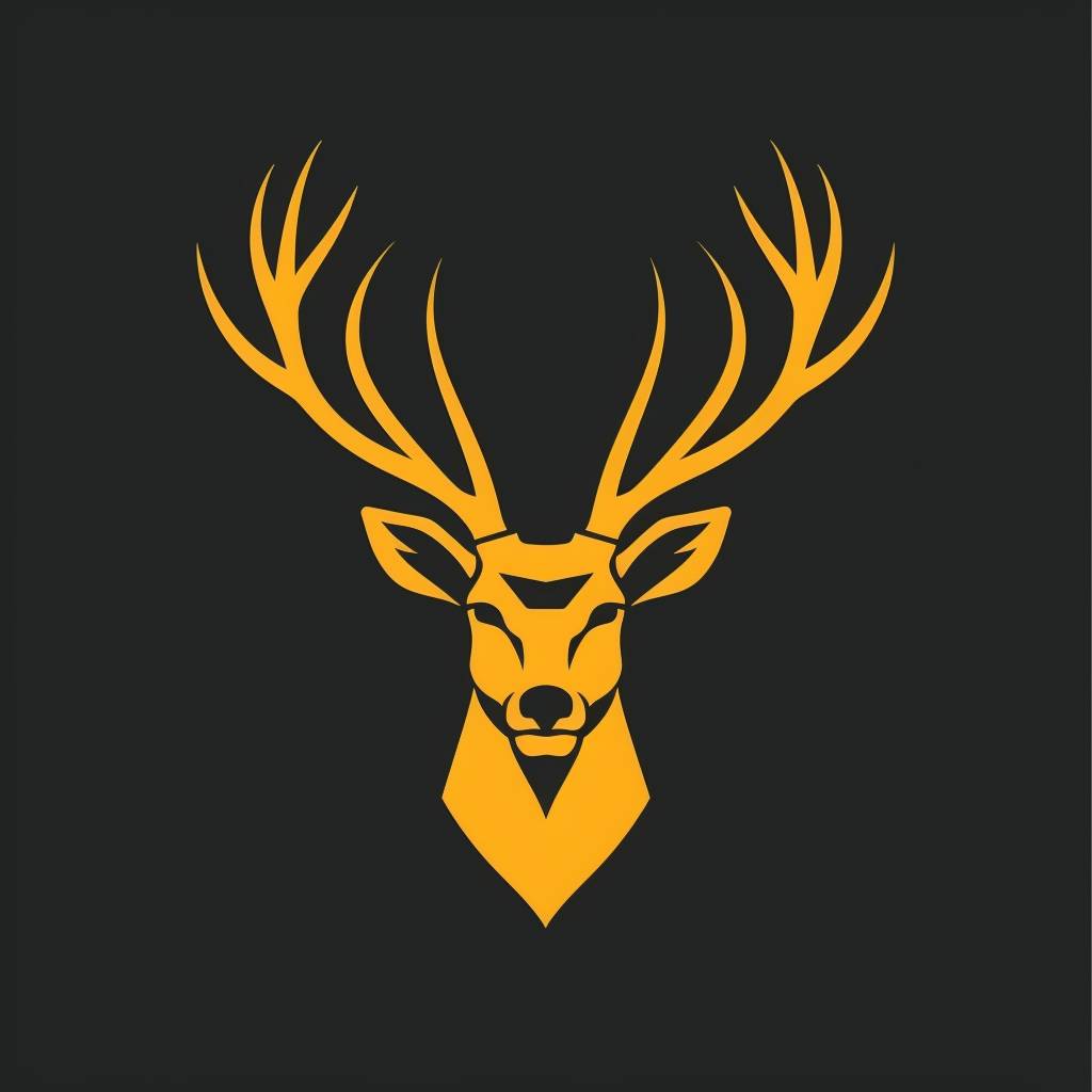 シンプルな平面的な鹿の頭のロゴデザイン。