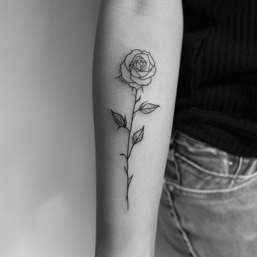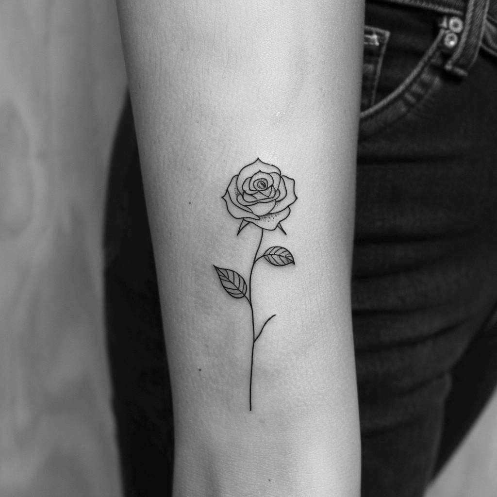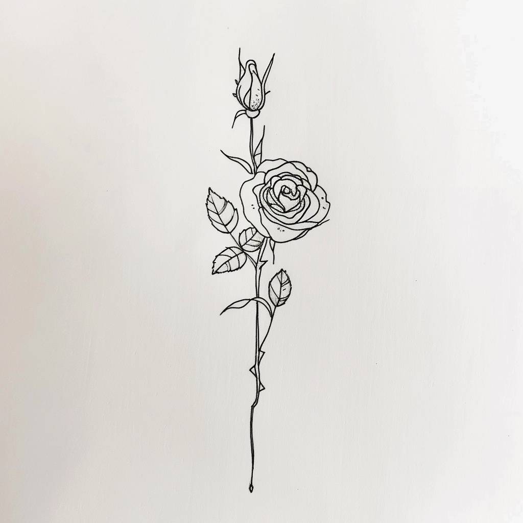 ミニマリストのバラのタトゥーデザイン、ライン、ミニマル、白黒、白い背景