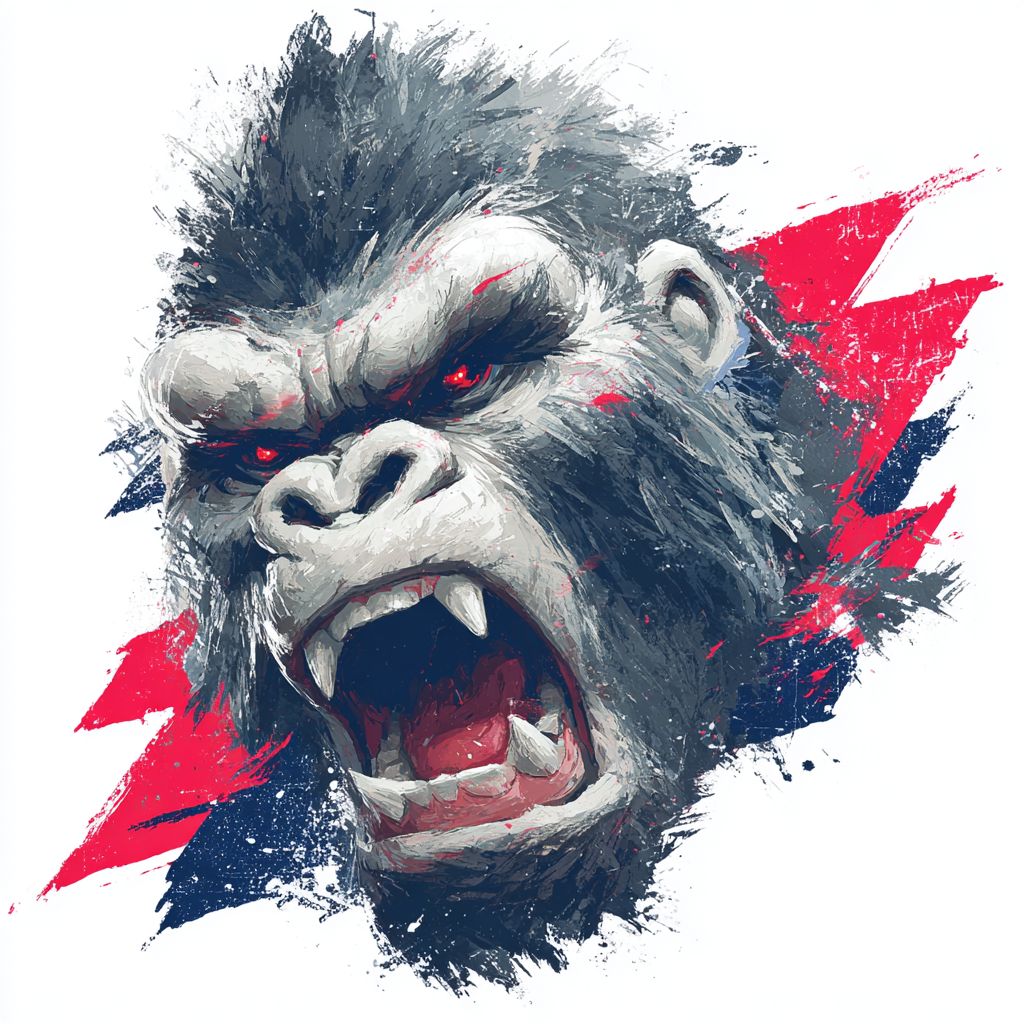 a softball team logo depicting an angry gorilla. Not intensely vicious but looking slightly aggressive. the colors should involve dark gray, white, and black. --s 750