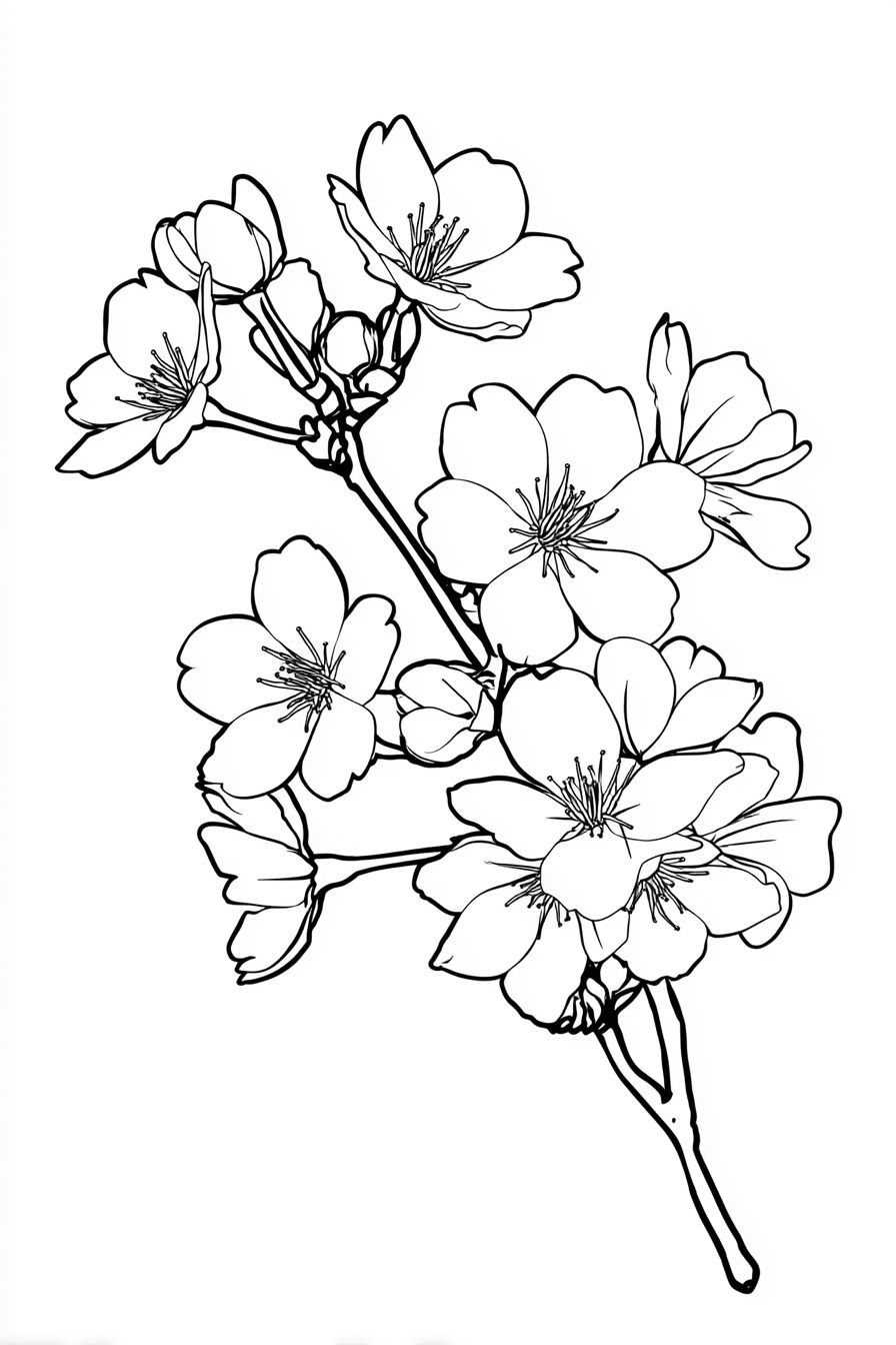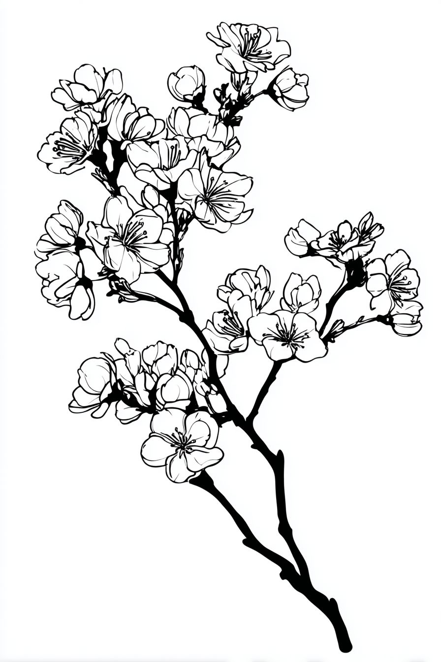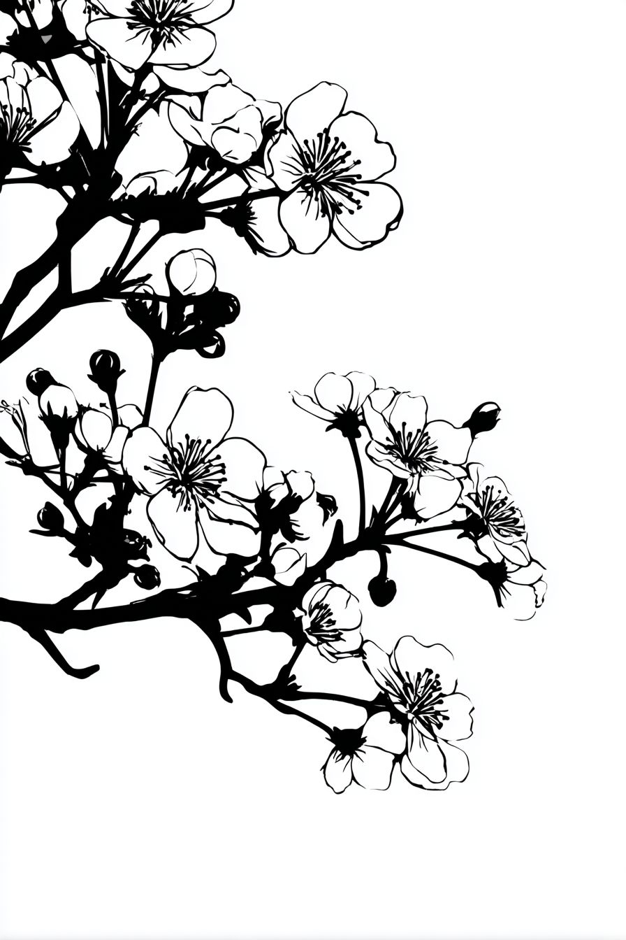 clean vector thick outline image of ei flower blossom thick branch of flowers, black on white --ar 2:3 --raw --v 7.0 --p yki8oxb