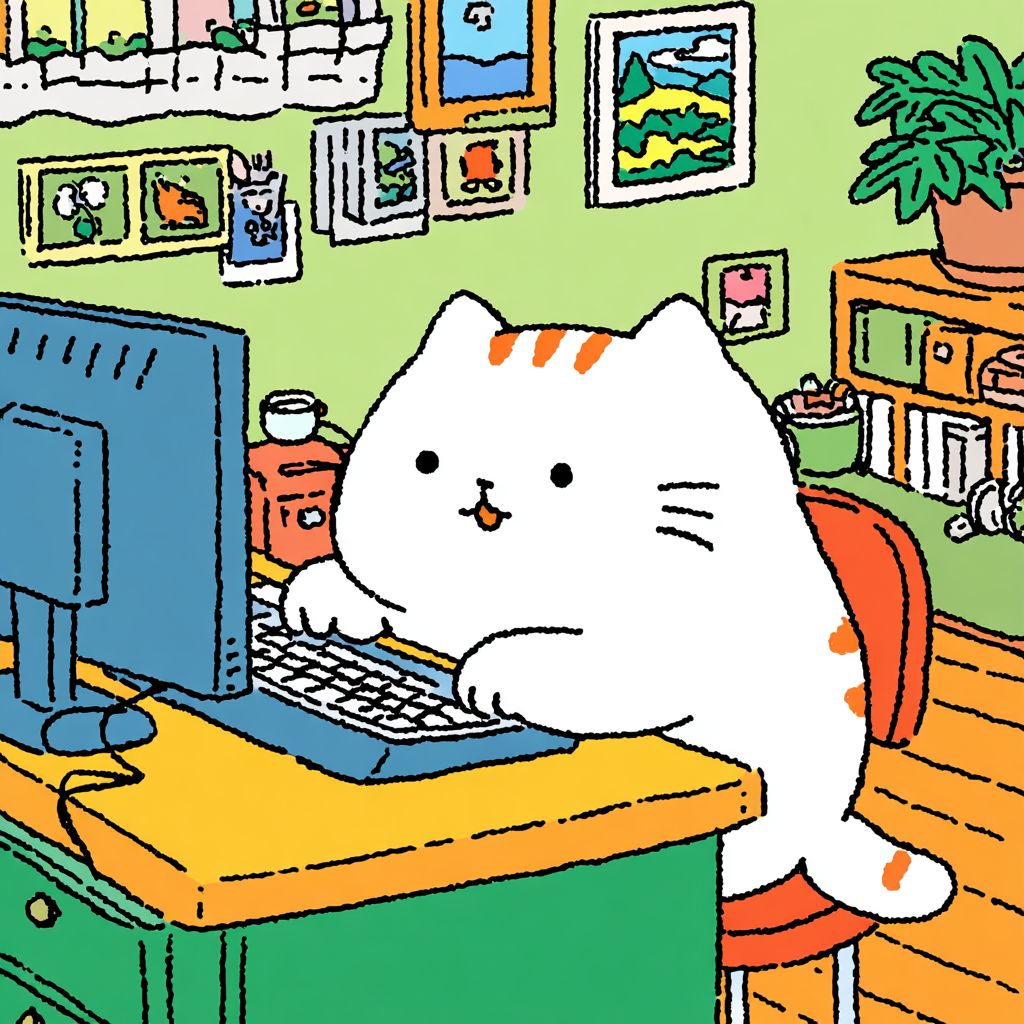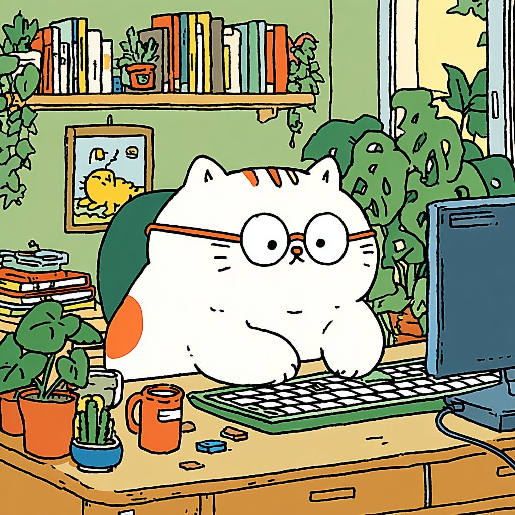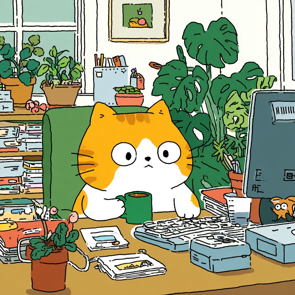 Cute Comic cat working, kawaii, Manga, simple --raw --sref 2828278251 --profile s8c5v9t --v 7.0