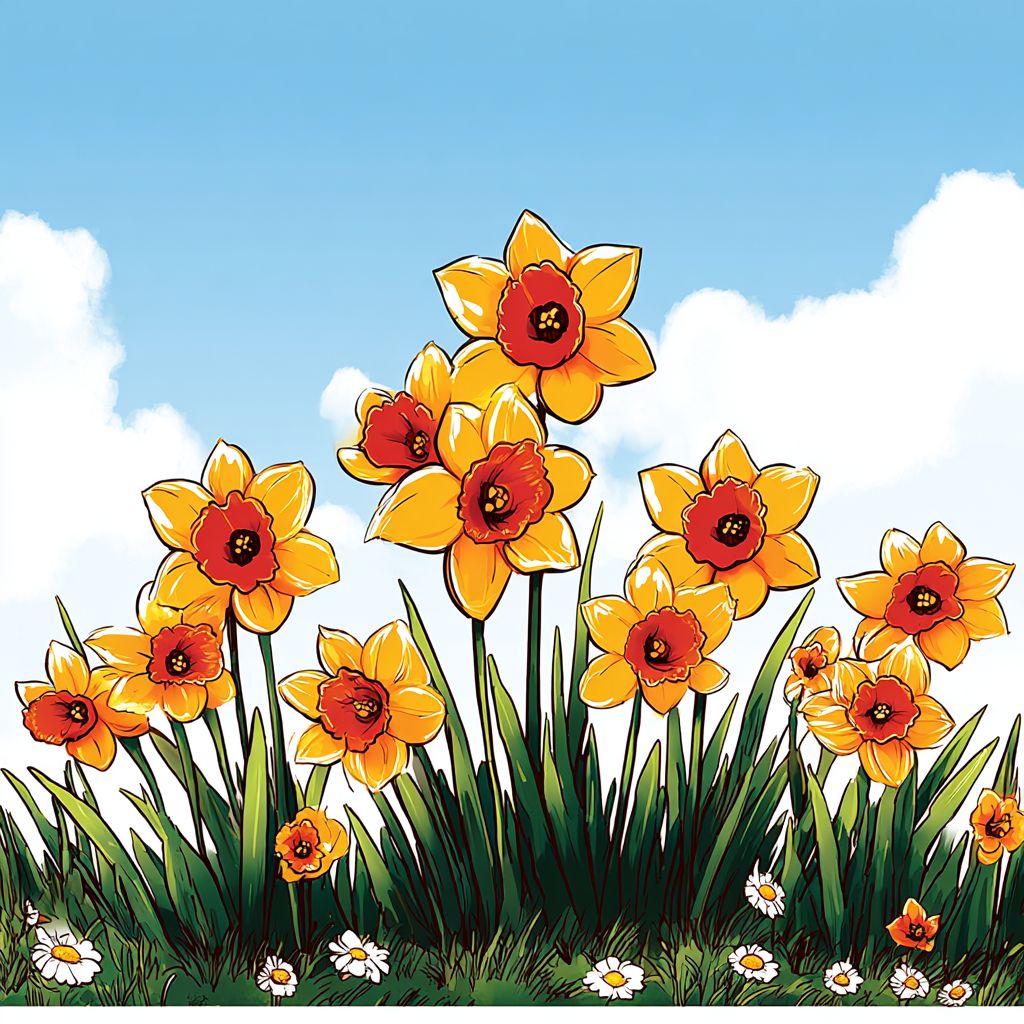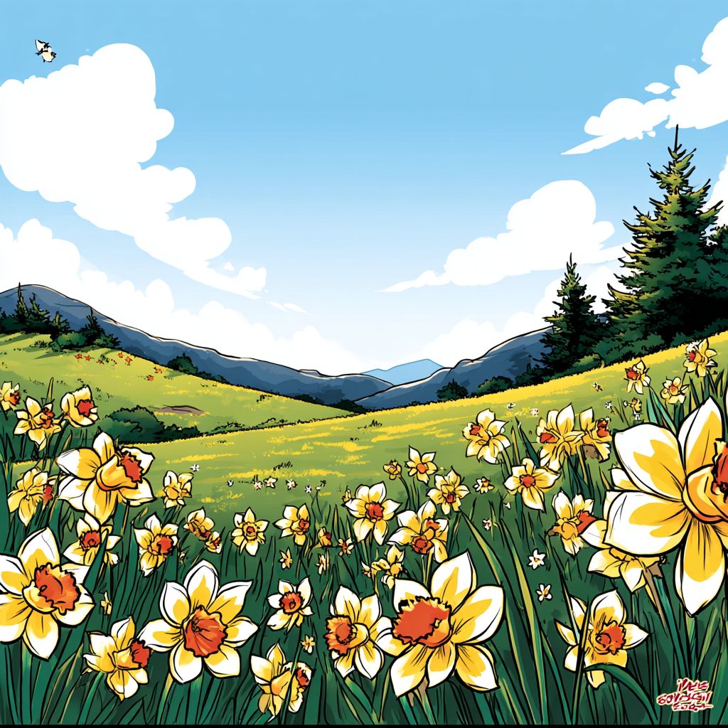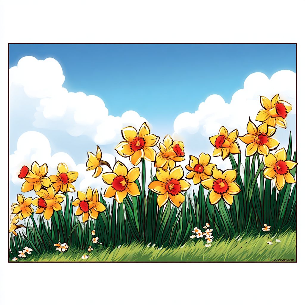 a sunny daffodil meadow --sref 3111627806 --ar 1:1 --v 7.0