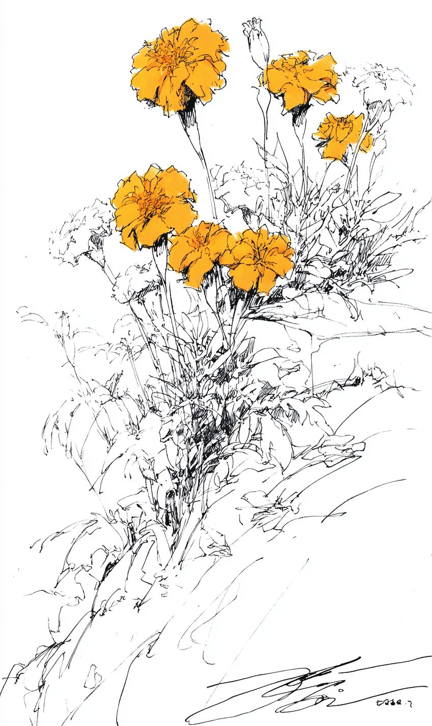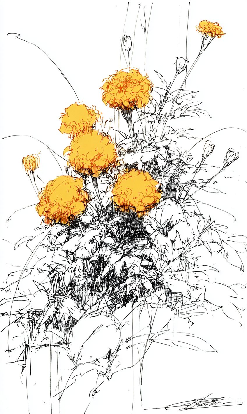 a vibrant marigold bed --sref 2516161576 --ar 3:5 --v 7.0