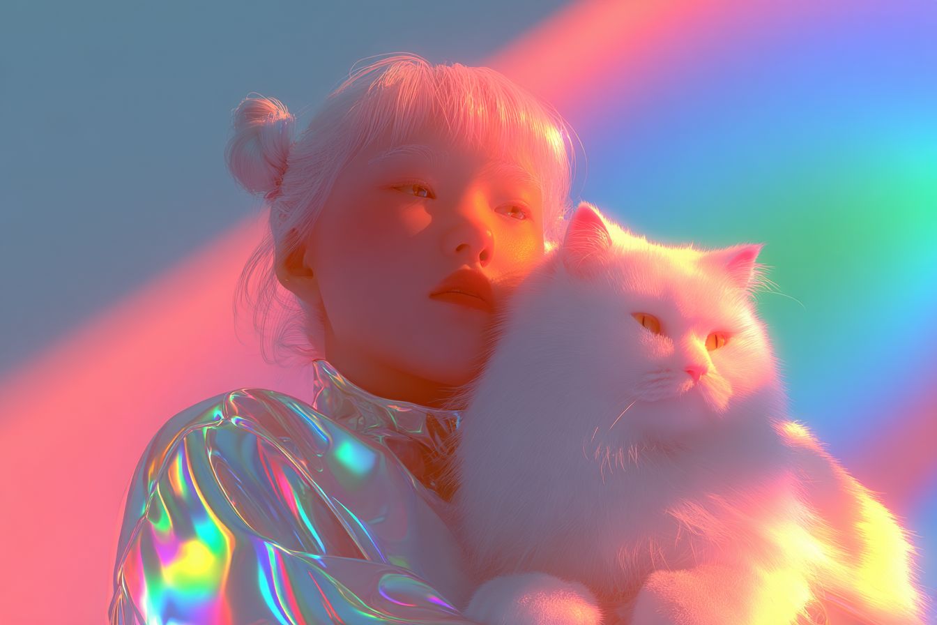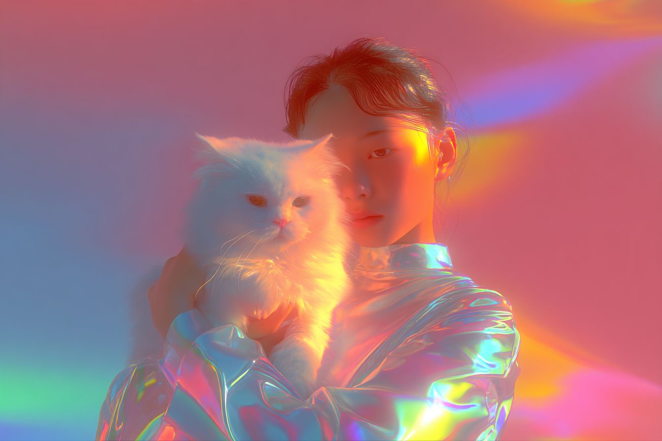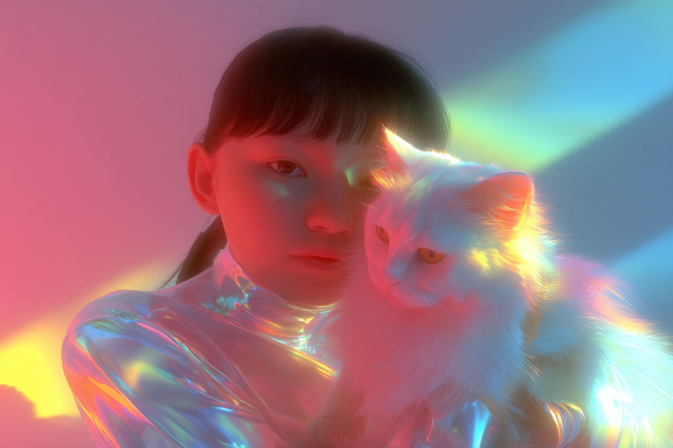 A young beautiful girl and a cute fluffy cat --sref 446622110 --ar 3:2