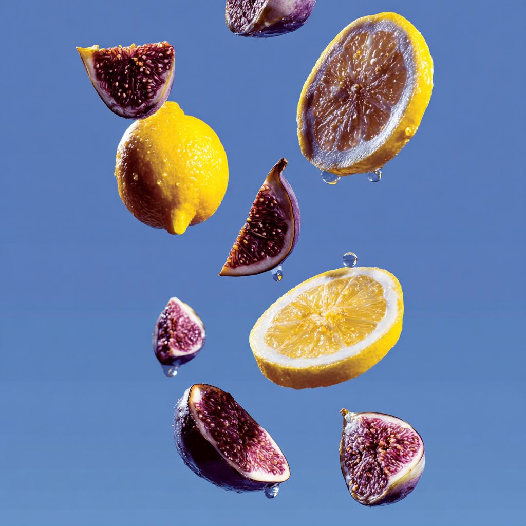 floating slice lemons, figs, skyblue background --profile vuukn4w ljahcqh chlkic9 --stylize 50 --raw