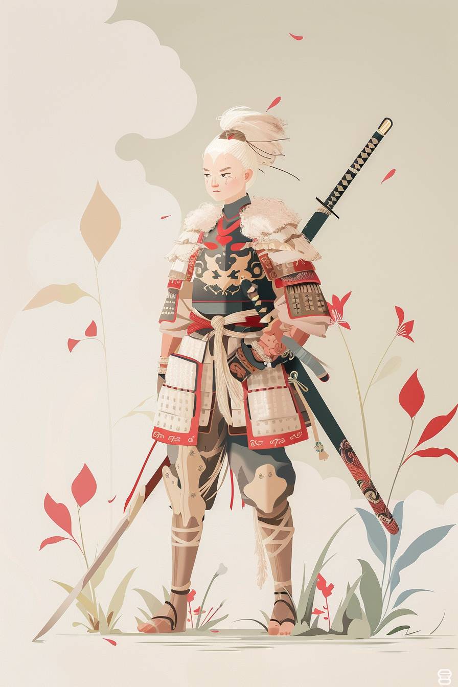 in style of Hsiao Ron Cheng, warrior character, full body, flat color illustration --ar 2:3 --v 6.0